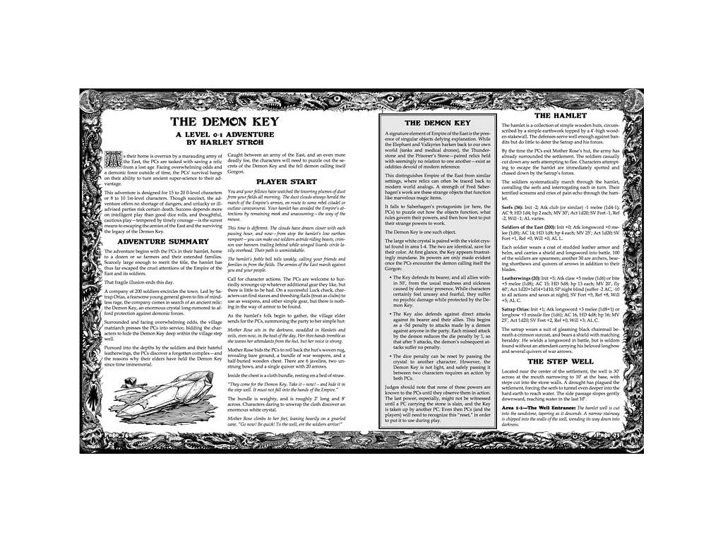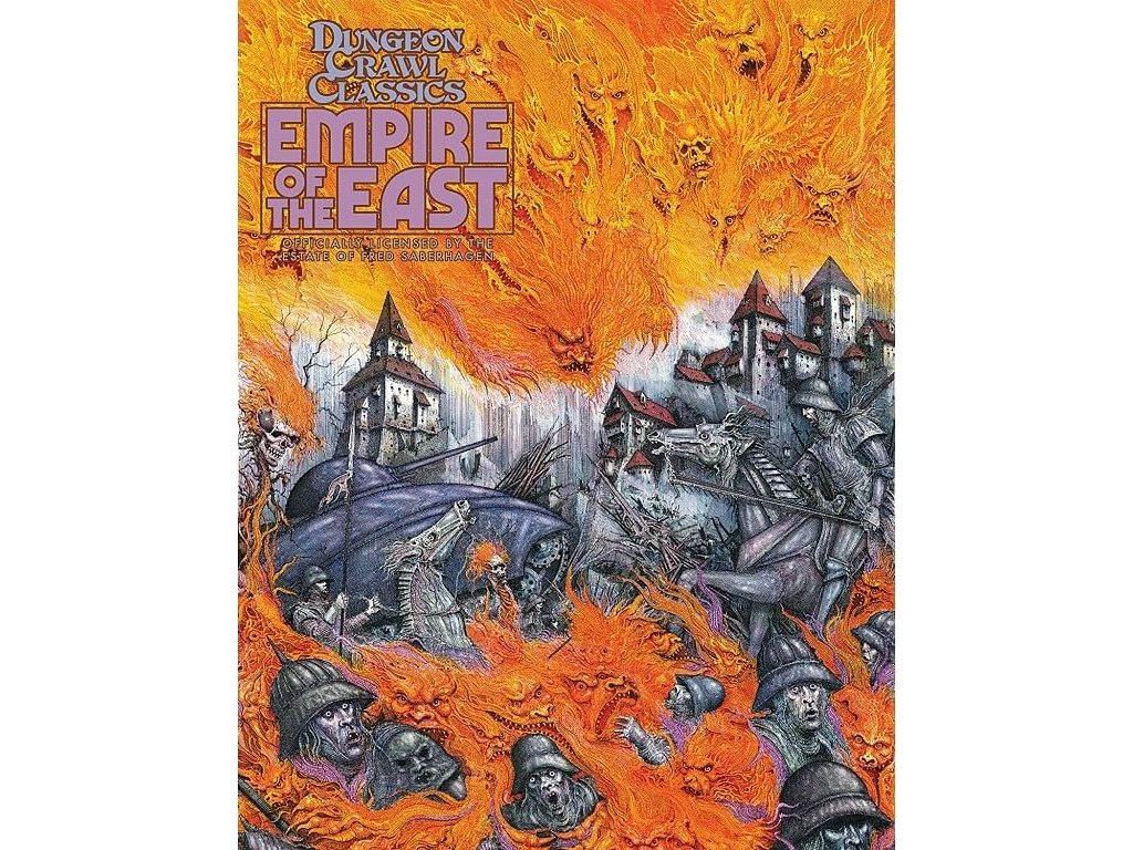 The Empire of the East je rozšiřující příručka pro hru na hrdiny Dungeon Crawl Classics, která nabízí řadu užitečných informací pro hraní v postapokalyptickém prostředí, 2 úvodní dobrodružství a mnoho dalšího! Příručka je v angličtině. Officially licensed by the estate of Fred Saberhagen, this hardcover sourcebook offers everything you need to play DCC RPG campaigns in the world of the Empire of the East. Thousands of years ago, the ashes of nuclear fire changed the world. The weapons of mass destruction ceased to work as the laws of physics altered. In their wake came elementals and demons, creatures from the darkest dreams and nightmares of mankind. Magic returned to the world. Humankind arose from the ashes and rebuilt society, just as the vile Empire of the East wielded the demonic powers of Orcus to sweep across the globe. Now it falls to a small group of resistance fighters to reclaim freedom for humanity! Inside you will find: Rules for magic tailored to the post-apocalyptic fantasy setting of the Changeling Earth, including new spells and summonings to enrich any DCC campaign Character options for adventuring in this world A discussion of demons, elementals, and monsters, including stats for creatures compatible with any DCC and MCC campaign Lost technology of the Golden Age of Man, and its effect on the Changeling Earth Statistics for all of the major characters from the trilogy, also usable as NPCs in any DCC or MCC campaign Two short low-level adventures to start your campaign And more! Using this sourcebook requires the DCC RPG core rulebook. While this sourcebook contains all you need to play a campaign, Saberhagen’s novels are an invaluable resource in understanding the setting. We highly recommend you also read the Saberhagen Empire of the East series, available as a modern compilation or in the original three individual volumes, titled The Broken Lands, The Black Mountains, and Ardneh’s World (also published as Changeling Earth).