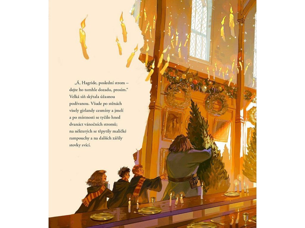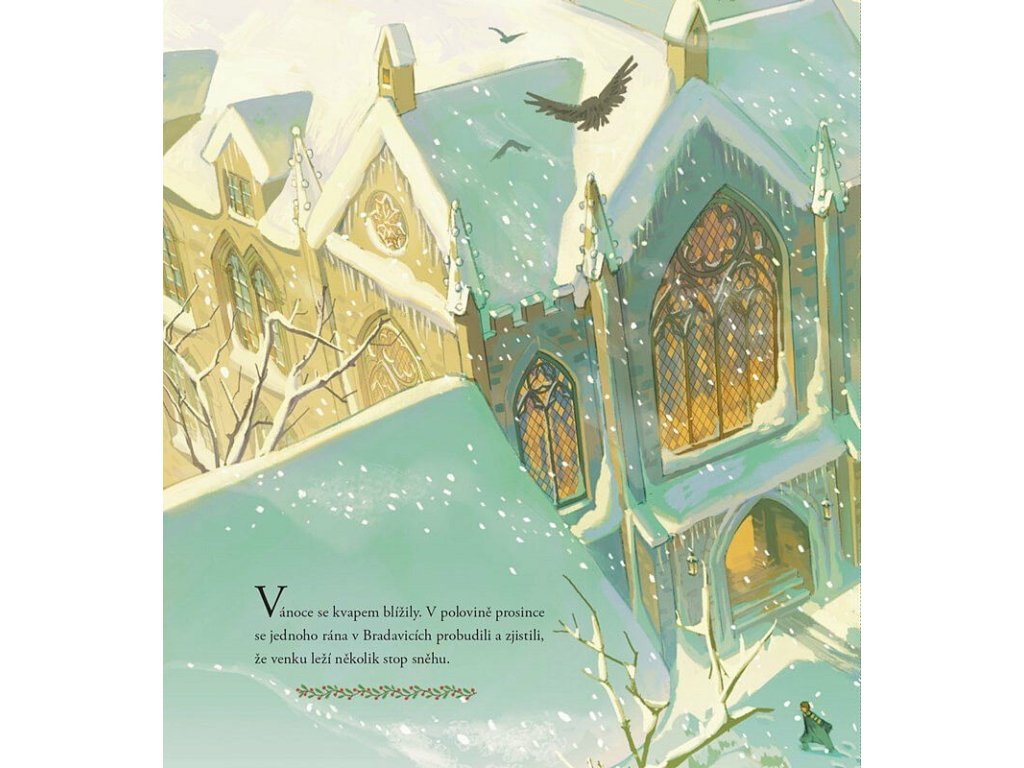 „Vánoce se kvapem blížily. V polovině prosince se jednoho rána v Bradavicích probudili a zjistili, že venku leží několik stop sněhu.“ Tak začíná dvanáctá kapitola série o Harrym Potterovi, která učarovala milionům čtenářů po celém světě. Prožij s mladým kouzelníkem jeho první Vánoce v Bradavicích! Nádherné ilustrace tě zavedou do slavnostně vyzdobené Velké síně, útulné společenské místnosti Nebelvíru, na zasněžené školní pozemky i na další místa plná sváteční atmosféry. Čeká tě nefalšovaná magie Vánoc…