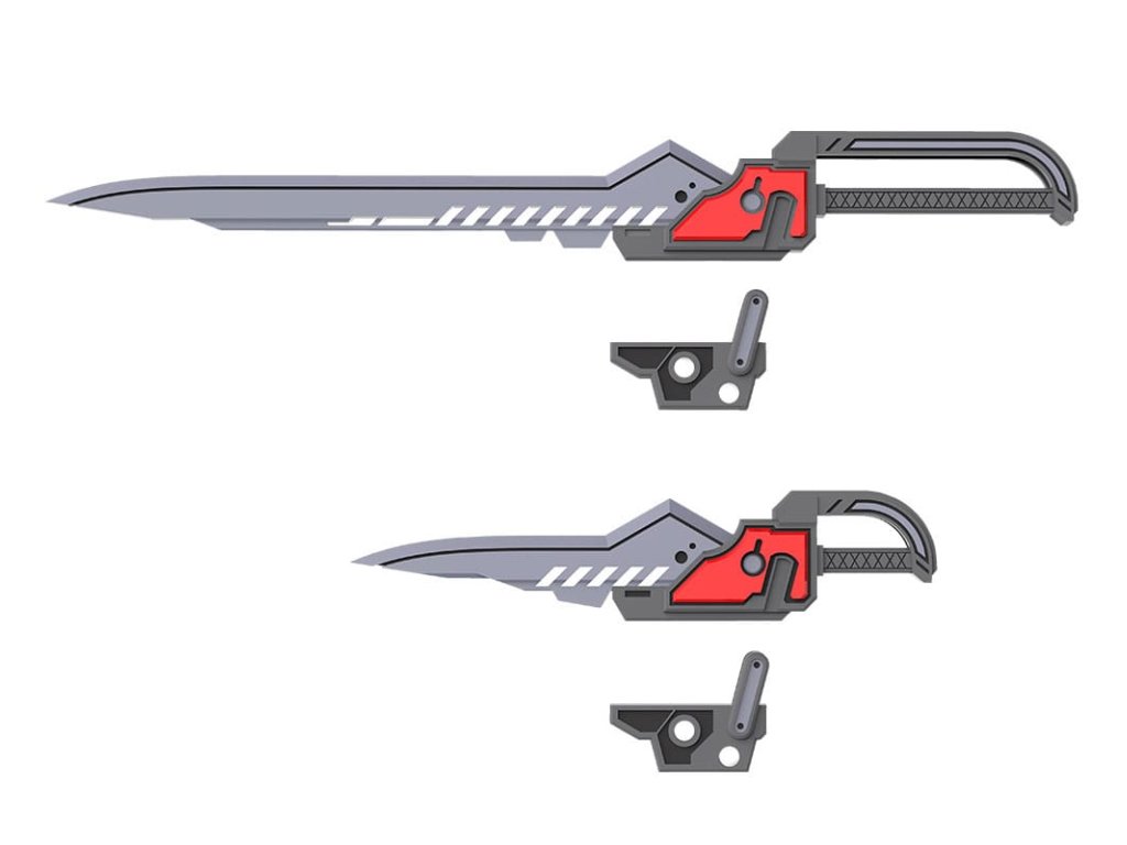 Nově navržená sada CUSTOMIZE BLADE SET01 se přidává do série M.S.G! Tento produkt obsahuje sadu velkých a malých přizpůsobitelných mečů. Produktové specifikace: - Meče se skládají z rukojeti a části čepele, které lze volně kombinovat. - Čepel je navržena s několika otvory, což dodává na výraznosti sci-fi designu. - Meče lze pomocí přiloženého montážního kloubu připevnit k modelům mecha a postav. - Tento výrobek bude také přizpůsobitelný s nadcházející sadou CUSTOMIZE BLADE SET02, ideální pro vytváření originálních zbraní. Tento model navrhl nadějný umělec, sera. SHO-RO-KI GRAND RISER, druhý produkt z nové série robotů Forme Arms, také navrhl sera, takže uživatelé je mohou kombinovat, aby vytvořili sjednocený vzhled. Součástí balení jsou: - 1 x Velká čepel - 1 x Malá čepel - 1 x Velká rukojeť - 1 x Malá rukojeť - 2 x Montážní kloub.
