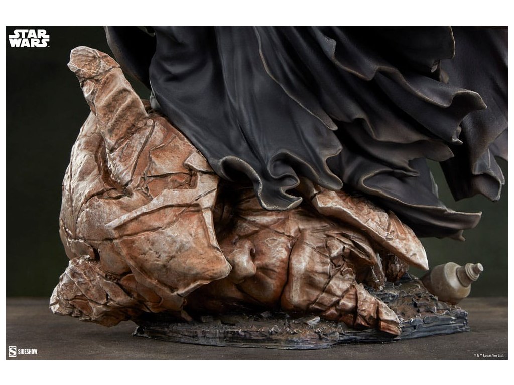 "Je to rána v Síle." Sideshow představuje Figurka Darth Nihilus™ Prémiového Formátu™. Z rozšířeného vesmíru Star Wars Legends, tato oficiálně licencovaná sběratelská figurka Star Wars™ se ponořuje do nekonečného příběhu galaxie. Darth Nihilus™ Prémiová Formátová Figurka měří 26,22 palce (66,6 cm) na výšku, 20,31 palce (51,6 cm) na šířku a 20,67 palce (52,5 cm) na hloubku, a je groteskní vtělením neukojitelné prázdnoty. S jeho temným pláštěm, který pohlcuje veškerý prostor kolem něj, Darth Nihilus vyskakuje z fragmentované hrobky obklopené neúrodnou pouštní krajinou. Poškozené červené skály se změní na rezavou barvu vyschlé krve pod světlem světelného meče tohoto zlomyslného padoucha. Odebírá sílu z každé bytosti na své cestě, aby zachoval svůj vlastní život, což způsobí, že se jeho srdce stane černým jako róby, které nosí. Tato plně sochařsky zpracovaná sběratelská figurka Darth Nihilus ve čtvrtinové velikosti je inspirována designy z videoher Star Wars: Knights of the Old Republic™. S ostrým stříbrným středovým dílem je za hladkou maskou podobnou porcelánu skryta vyhublá tvář a oči zničené tmavou stranou. Trhané okraje a detailně zpracované záhyby připomínající tkaninu skrývají fyzickou podobu udržovanou pouze bolestí - a drženou pohromadě prostřednictvím čiré vůle a dravé konzumace. Základna figurky je zdobena zbytky rozbitého Sithského monumentu, který byl vymlet pískem a zničen věčností. Navíc tato Star Wars socha obsahuje svítící červený světelný meč™, který ukazuje hořící zlobu tohoto děsivého postavy. Uspokojte Pána Hladu a přineste si dnes sochu Darth Nihilus™ Prémiového Formátu™ od Sideshow do svého domova!