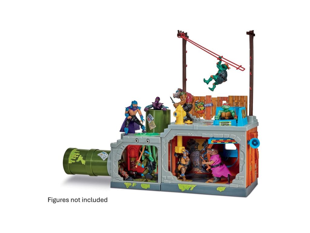 Cowabunga - Mládežnické mutantní nindža želvy jsou zpět! 4 stejně silní teenage hrdinové s nepřekonatelnými dovednostmi v bitvě dobra proti zlu! Playmates představují úkryt želv jako Klasickou sadu Tajný kanalizační poklop.