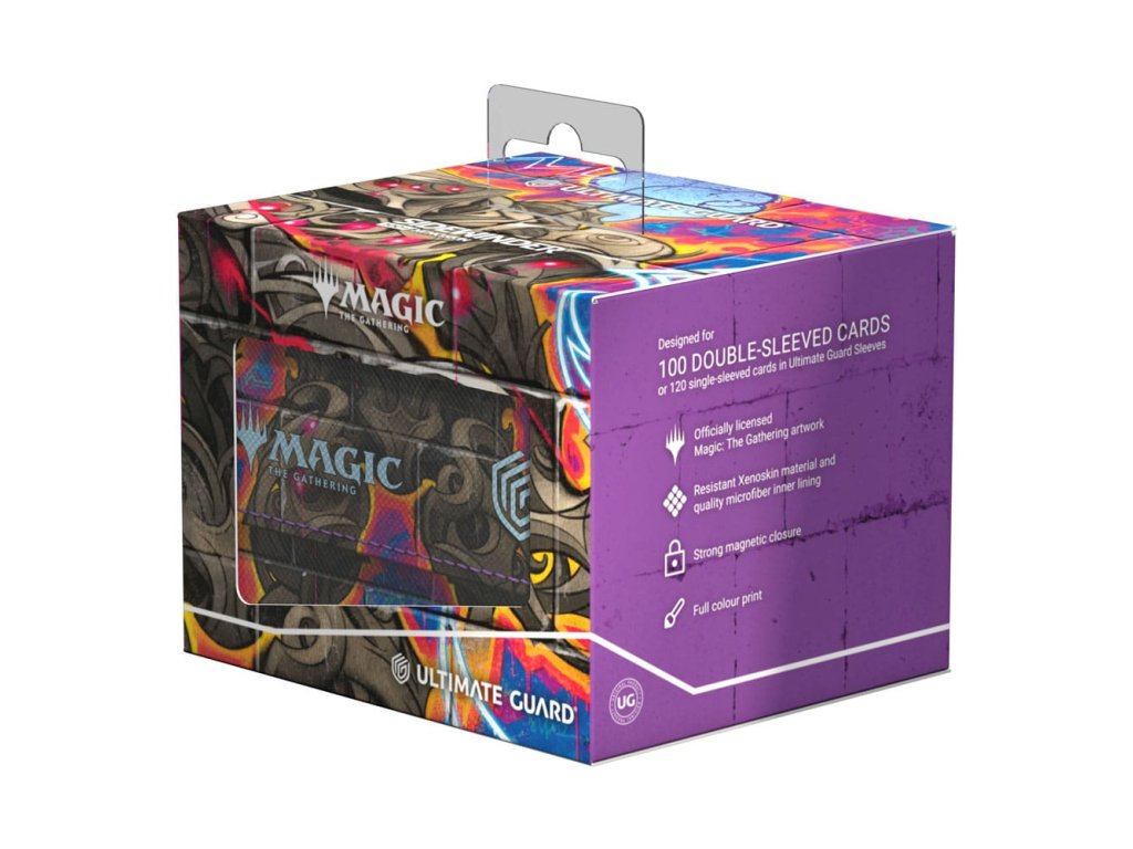 Sidewinder 100+ Xenoskin je vysoce kvalitní krabička na balíčky karetní hry, která nabízí prémiovou ochranu karet díky odolnému materiálu Xenoskin, vnitřnímu obložení z mikrovlákna a silné magnetické uzávěrce, přičemž zároveň umožňuje snadný a pohodlný přístup k balíčku uvnitř. Krabičky na balíčky jsou potisknuté v plné barvě oficiálně licencovanými obra zky z nadcházející sady Magic: The Gathering "Aetherdrift". Sidewinder 100+ Xenoskin je optimalizován pro uchování 100 dvojitě obalovaných nebo 120 jednoduše obalovaných karet v obalech Ultimate Guard.