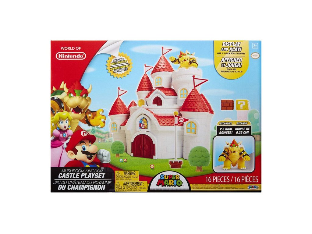 Oživte svět Nintendo! Tato herní sada hradu Království Houby od Nintendo obsahuje některé z vašich oblíbených postav ve zábavné dioramové sadě. Hrajte a nastavujte své oblíbené postavy a vystavujte hrací sadu pro hodiny nekonečné zábavy! Měří zhruba 30 x 27 x 13cm, je dodávána s příslušenstvím a 6 cm vysokou figurkou Bowsera v okenní krabičce.