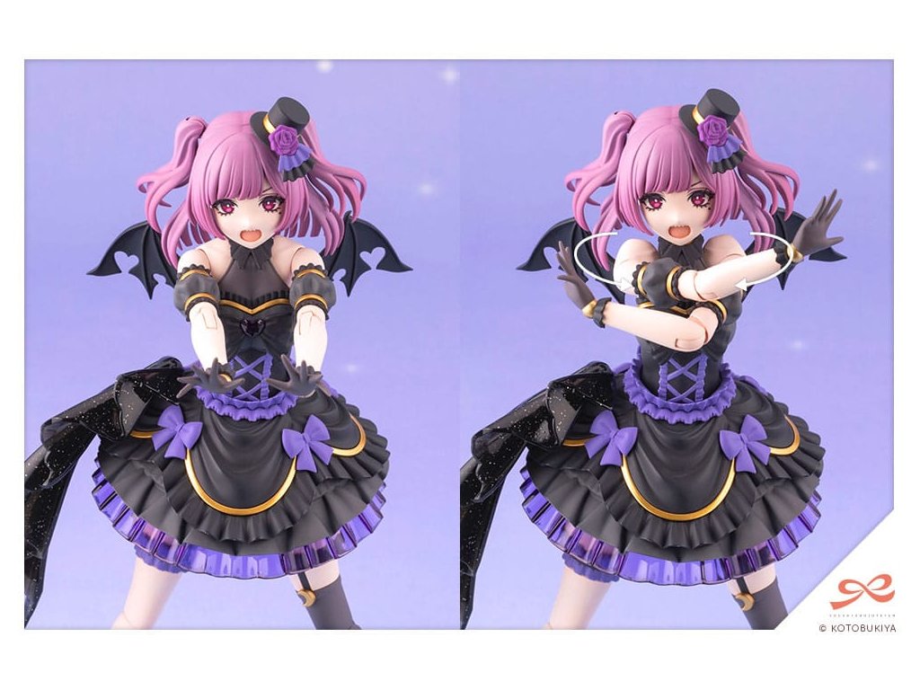 "Měsíční svit? Měsíc dnes večer září! Tsukinyonův proud je blízko!Yue Kisaragi, studentka třetího ročníku na dívčí střední škole sv. Iris Gakuen, stejné škole, kterou navštěvovaly Ritsuka Saeki a Emma Koishikawa, je vydána jako plastikový model její postavy Tsuki! Produkt nabízí:Design specializovaný pro taneční pózy:Nový design je částečně přepracován ilustrátorem En Morikurou pro zlepšení artikulace. Model byl specificky navržen tak, aby bylo možné znázornit roztomilou taneční choreografii. Vyznačuje se prodlouženými ramenními klouby, krčním kloubem schopným pohybu ve všech směrech a dvojitě kloubovými koleny pro větší pružnost. Dva klouby v trupu umožňují ohýbání dopředu nebo ohnutí dozadu, což umožňuje širokou škálu expresivních póz.Pohybující se, polohovatelné vlasy:Části účesu s polovičními copánky jsou navrženy tak, aby se pohybovaly spolu s dynamickými tanečními pózami. Zadní, boční a dvojitá sekce vlasů jsou všechny artikulovány, což jim umožňuje plynule plynout a zároveň nezasahovat do trupu.Čtyři části obličeje:Na základě Tsukiho hudebního videa obsahuje sada čtyři výrazy: Závěrečný šéf, Mňoukání na fanoušky, Intenzivní zpěv, a Soustředění. Jsou zahrnuty jak předmalované, tak nepředmalované části obličeje. Sada také obsahuje samolepky pro oči, které se dívají různými směry, takže originální tváře lze vytvořit jejich použitím s nepředmalovanými částmi obličeje.Čtyři části ofiny:Kromě výchozích ofin ozdobených kloboukem jsou zahrnuty také tři ofiny bez klobouku. Verze s kloboukem má růži a další dekorace rozdělené do čtyř různých barev. Tři části ofiny bez klobouku existují ve standardní verzi, kompatibilní s headsetem a brýlemi, což umožňuje znovu vytvořit celou řadu scén.Nově tvarované části rukou:Pět nově modelovaných částí rukou je zahrnuto pro roztomilé pózy a expresivní živá vystoupení. Idolský znamení, Roztomilý Otevřený A, Roztomilý Otevřený B, Silný Otevřený A a Silný Otevřený B jsou všechny zahrnuty spolu se sedmi standardními typy rukou, celkem 12 rukou. A co je víc! Zápěstí jsou na nově navrženém běžci, který umožňuje sestavit více kloubů současně, což usnadňuje montáž.Mikrofon a stojan:Dva typy mikrofonů jsou zahrnuty jako volitelné příslušenství pro pózy zpěvu. Mikrofon je k dispozici ve dvou stylech: Standardní typ, který lze držet v ruce, a Retro design, který se připojuje k stojanu.Mikrofonový stojan se připojuje k základně zobrazovacího stojanu použitému pro zobrazení postavy.Barva:Barvy původního designu jsou znovu vytvořeny pomocí oddělených částí a celkem se používá 12 barev, včetně základny. Látka na jejím pasu je formována ve třpytivě průhledné černé, což jí dodává jiskřivý, nápadný dojem.Bledý tón pleti:Model používá barvu pleti C, což umožňuje jeho kombinaci s modely jako je Kuon Yakushiji Maria Kagaribi Kostým a Dress Up Tělo M barva C ver.Zobrazovací základna:Podpěrný prvek zobrazovací základny má pohyblivý kloub, což umožňuje širokou škálu akčních póz. Základna je černě zbarvená.V balení je: - 1 x model Yue Kisaragi ×1 - 1 x části účesu (Poloviční twin copánky) ×1 - 4 x typy částí ofin (S kloboukem/Bez klobouku Standard/Bez klobouku s Headsetem/Bez klobouku s brýlemi) ( 1 x každý ) - 4 x typy předmalovaných částí obličeje (Závěrečný šéf/Mňoukání na fanoušky/Intenzivní zpěv/Soustředění) ( 1 x každý ) - 4 x typy nepředmalovaných částí obličeje (Závěrečný šéf/Mňoukání na fanoušky/Intenzivní zpěv/Soustředění) ( 1 x každý ) - 12 x typů částí rukou (Držící standard/Držící úzký/Držící široký/Držící kulatý/Zavřený/Ukazující/Otevřený A/Idolské znamení/Roztomilý Otevřený A/Roztomilý Otevřený B/Silný Otevřený A/Silný Otevřený B) ( vlevo a vpravo každý ) - 1 x Retro Mikrofon - 1 x Standardní mikrofon - 1 x stojan na mikrofon - 1 x zobrazovací základna - 1 x krční kloub pro Megami Device - 1 x list s nálepkami. Orientační datum vydání: červenec 2026