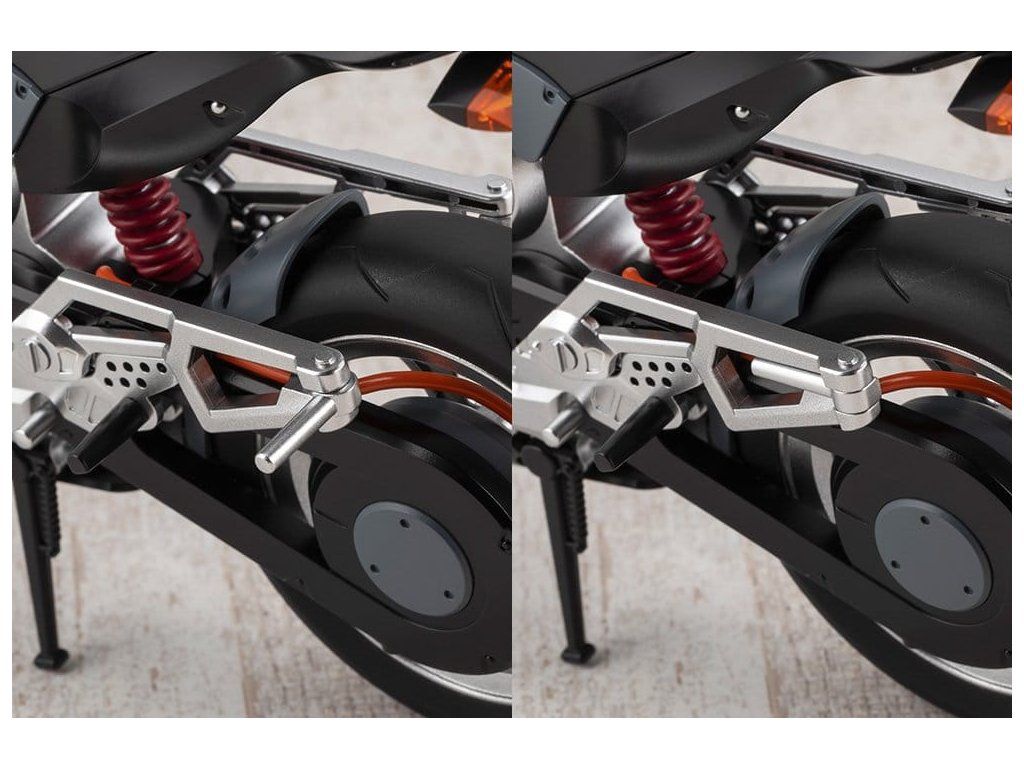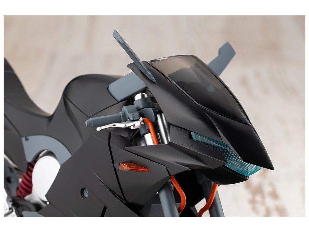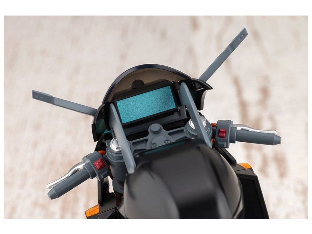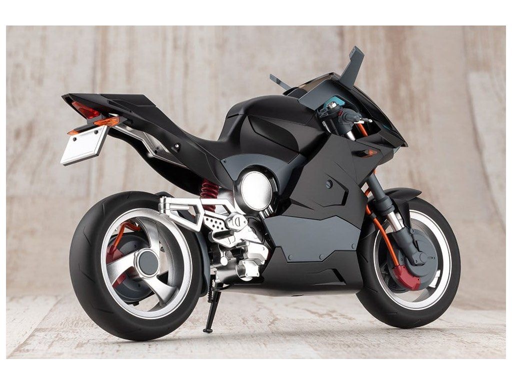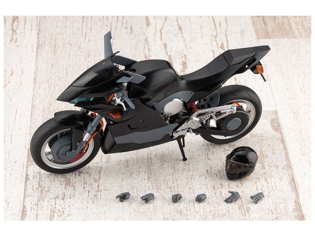 Velmi univerzální černá barva použitelná v jakékoliv scéně! Barevná varianta Extrémní sportovní motorky se připojuje k exkluzivní řadě Kotobukiya. Poprvé v původní řadě motorek Kotobukiya jde o standardní, nebojový motocykl. Díky designérovi F, který navrhoval i Megalomaria a M.S.G, se však výborně hodí k různým sériím. V měřítku 1/10 je celková délka přibližně 195 mm. Rozměrově je vhodný pro ježdění postav s celkovou výškou přibližně 160 mm — efektní scény lze vytvořit v kombinaci s modely jako Maria Kagaribi [Dress Code] nebo Emulator ze série Megalomaria. Užijte si tento snap-fit kit motorky, který se stejně snadno sestavuje a užívá jako stavebnice postav! *Rui Saotome?Touou High School Tracksuit?Dreaming Style Midnight Onyx vyžaduje použití jezdícího těla pro nasednutí na motorku. Vlastnosti: - Řídítka a kola jsou propojena, což umožňuje měnit úhel natočení řízení. Kola se také mohou volně otáčet, což umožňuje jejich manuální rotaci. - Zadní stupačky pro spolujezdce lze vyklopit. - Na spodní části karoserie se nachází 3mm spojovací bod, který umožňuje vystavit motorku pomocí samostatně prodávané základny Flying Base. Celotvářová přilba: - Po vysunutí horní části přilby a vnitřní základny lze použít samostatně prodávané obličejové díly Sousai Shoujo Teien. To umožňuje změnu výrazu na různé kompatibilní postavy, například Rui Saotome. - Kšilt (vizor) lze otevírat a zavírat. Je odlita z průhledného plastu, aby byl připevněný obličej snadno viditelný. - Vnitřek přilby je pečlivě vymodelován tak, aby odpovídal ofině a týlu Rui. - Kompatibilní s obličejovými díly Megalomaria (dámský typ těla), což umožňuje různé kombinace. - Barva kůže na krku používá odstín Skin Color C, což umožňuje připevnění obličejových dílů široké škály postav. *Ohledně kompatibility přilby: postavy Ao Gennai a Bukiko Kotobuki ze série Sousai Shoujo Teien používají vlastní standardy, takže nejsou s přilbou kompatibilní. *Přilba je stejná jako ta, která je součástí Rui Saotome?Touou High School Tracksuit?Dreaming Style Midnight Onyx. Rukavice: - Součástí jsou tři typy rukavic: otevřená, zavřená a na držení řídítek. Tyto díly rukou lze připevnit k modelům ze sérií Sousai Shoujo Teien a Megalomaria. Barevné provedení: - Motorka: Black 1, Black 2, Gray (šedá), Smoke Gray (kouřově šedá), Clear Turquoise Green (průhledná tyrkysově zelená), Clear Orange (průhledná oranžová), Clear Red (průhledná červená), Orange (oranžová), Red (červená), Silver (stříbrná) - Celotvářová přilba: Black (černá), Clear Black (průhledná černá), Skin Color C, Milk Tea (barva vlasů) - Rukavice: Gray (šedá) Obsah balení: - 1× Extrémní sportovní motorka - 3× typy dílů rukou (levá/pravá: otevřená, zavřená, držení řídítek) - 1× celotvářová přilba