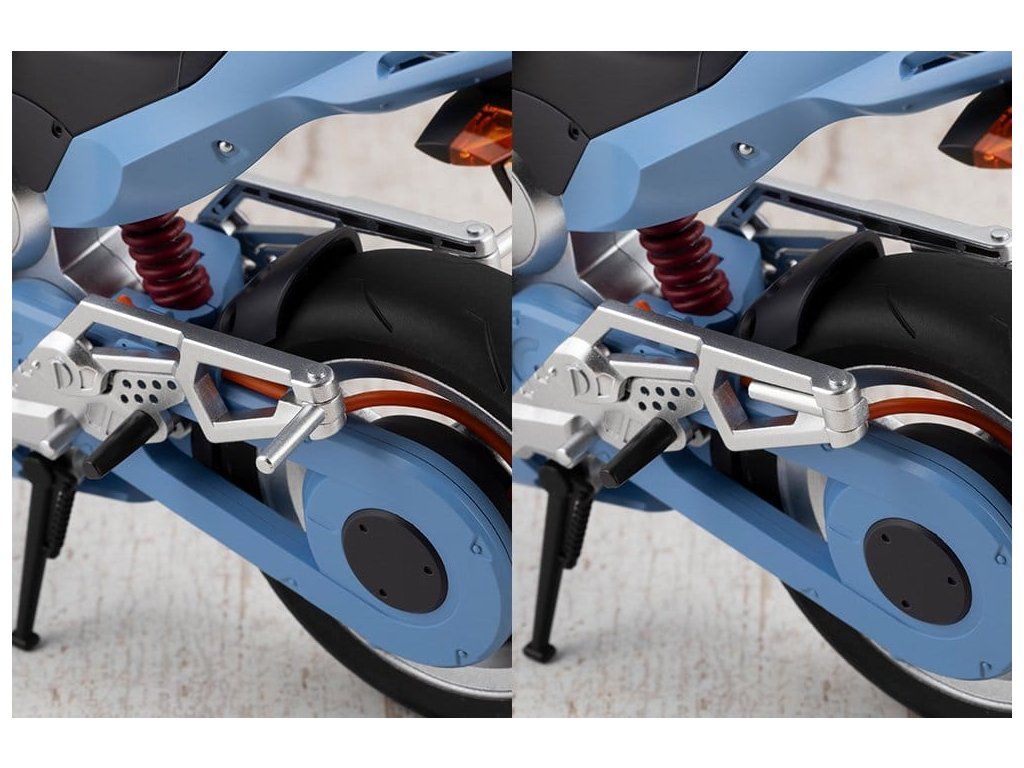 První model v původní nabídce motocyklů Kotobukiya; jedná se o standardní, nebojový motocykl. Díky designérovi F, který navrhuje také série Megalomaria a M.S.G., výborně ladí s různými řadami produktů. V měřítku 1/10 je celková délka přibližně 195 mm. Je dimenzován tak, aby na něm mohly jezdit modely postav vysoké zhruba 160 mm, což v kombinaci se sérií Megalomaria umožňuje vytvářet působivé scény. Stejně jako modely postav jde o stavebnici typu snap-fit (bez nutnosti lepení), kterou lze snadno složit a užít si ji. Vlastnosti: Řídítka a kola jsou propojená, takže lze měnit úhel natočení; kola se navíc volně otáčejí a lze je otáčet ručně; zadní stupátka pro spolujezdce lze vyklopit; na spodní straně karoserie je 3mm připojovací bod pro vystavení na samostatně prodávaném Flying Base. Celotvářová helma: vysunutím horní části helmy a vnitřní základny lze použít samostatně prodávané obličejové díly ze série Sousai Shoujo Teien, což umožňuje změnu výrazu pro různé kompatibilní postavy (např. Rui Saotome). Štít helmy je otevíratelný a je odlité z průhledného plastu, takže připevněný obličej je dobře viditelný. Vnitřek helmy je pečlivě modelován tak, aby odpovídal ofině a týlu Rui. Helma je kompatibilní s obličejovými díly Megalomaria (ženský typ postavy), což umožňuje různé kombinace. *Ohledně kompatibility helmy: postavy Sousai Shoujo Teien Ao Gennai a Bukiko Kotobuki používají odlišné standardy, takže nejsou s touto helmou kompatibilní. Rukavice: jsou přiloženy tři typy rukou s rukavicemi — otevřené, zavřené a držící řídítka; tyto díly rukou lze použít u stavebnic ze série Sousai Shoujo Teien i Megalomaria. Součást balení: 1× extrémní sportovní motorka; 3× typy rukavic (levá/pravá: otevřené, zavřené, držící řídítka); 1× celotvářová helma.
