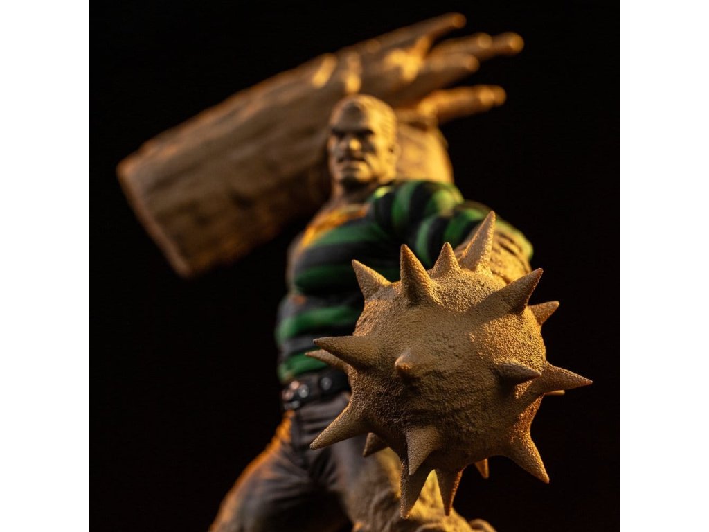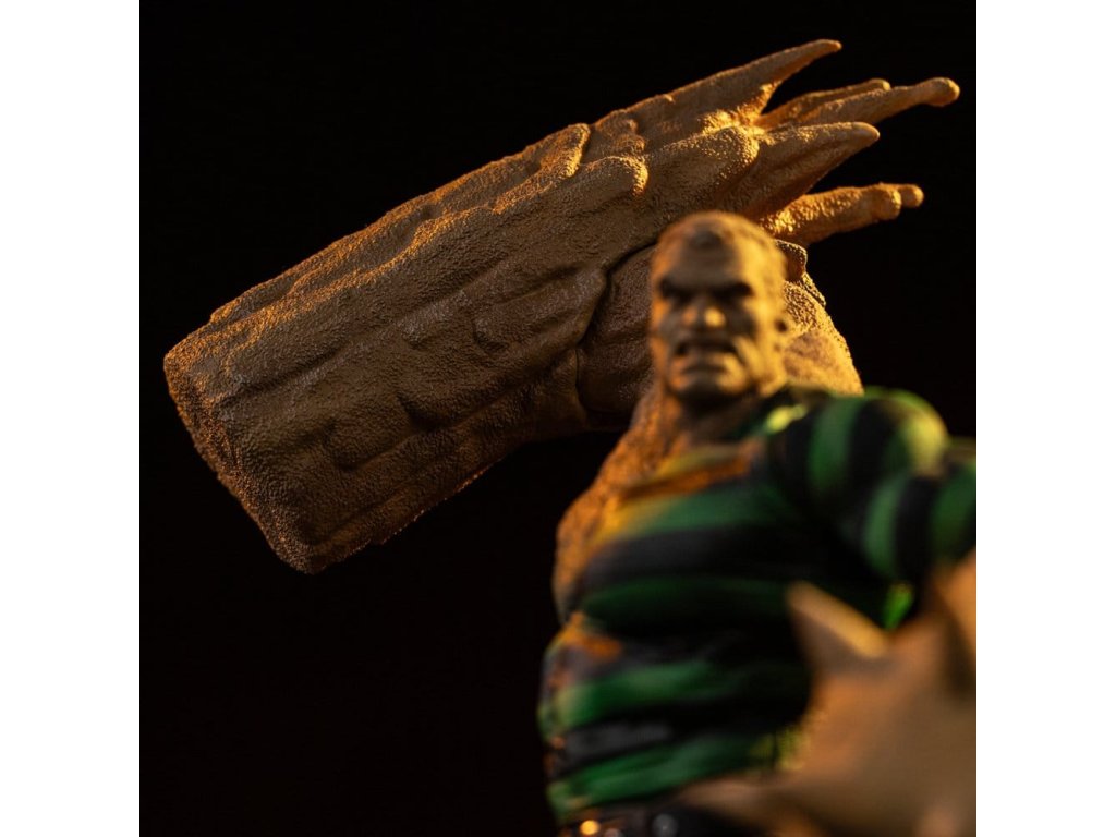 Masivní, neústupný a řízený surovou brutální silou, tato socha přivádí Písečného muže k životu v silné a ničivé reprezentaci. Je součástí kolekce Diorama Spider-Man vs Villains, zachycuje jednoho z nejvíce fyzicky náročných nepřátel Spider-Mana, jak se vynořuje v písečné bouři a zuřivosti, představuje ohromnou sílu a nezastavitelnou dynamiku. Vyrobila studio Iron Studios, tato socha Art Scale 1/10 ukazuje výjimečné sochaření a ručně malované dokončovací práce. Od dynamické anatomie formované pískem a explozivních textur po tematickou základnu, která je navržena tak, aby se bezešvě integrovala do většího diorama, každý prvek je řemeslně zpracován tak, aby vyjadřoval pohyb, hmotnost a filmový dopad. Ve velikosti 1/10 tato socha poskytuje výraznou a dramatickou přítomnost na zobrazení, ať už je vystavena samostatně nebo jako součást kompletního Diorama Spider-Man vs Villains. Navrženo tak, aby zdůraznilo velikost, sílu a vizuální vyprávění, stojí jako nezbytný doplněk pro fanoušky Spider-Mana a sběratele, kteří hledají vysoce efektivní sběratelské předměty řízené příběhem. Tato oficiálně licencovaná socha od "Marvel Comics" je vyrobena z pryskyřice. Socha měřítko 1/10 měří přibližně 30 x 25,5 x 25,7 cm.