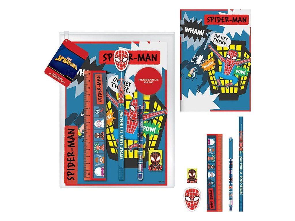 Oficiálně licencovaná sada psacích potřeb od Pyramidu pod licencí Spider-Man s motivem skicovacího sešitu.
