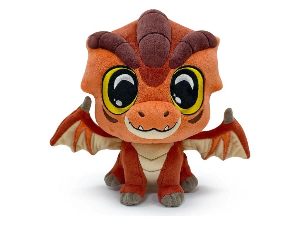 Měří 22 cm na výšku. Má obrovské žluté oči dívající se shora, podkusnou čelist s ostrými zuby a silné hnědé rohy táhnoucí se přes špičatou oranžovou hlavu. Tmavá zakřivená značení pokrývají tváře, drápovité tlapky spočívají vpředu, z každého ramene se rozprostírají dlouhá křídla s šedými háčky na vrcholcích a ze zad visí malý ocas. Tento plyšák je vyplněný 100% PP vatou až po okraj a je vyroben z nejjemnějšího minky materiálu — naprosto ideální pro mazlení nebo pro představy o klouzání po obloze!