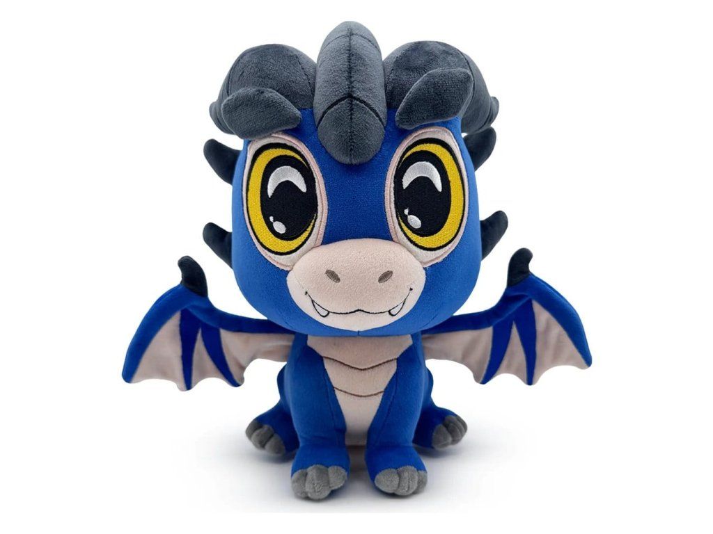 Sedí a měří 22 cm na výšku, s obrovskými žlutými očima, které září z vrchu, se zubatým úsměvem a silnými šedými rohy táhnoucími se přes jeho modrou hlavu. Jeho hruď je světle béžová, drápkaté tlapky spočívají vpředu a z každého ramene vycházejí dlouhá křídla se šedými háčky na horní straně. Z jeho zad visí malý ocas. Tento plyšák je napěchovaný 100% PP výplní a je vyroben z nejměkčího minky materiálu, absolutně ideální na mazlení nebo na šplhání po zdech!