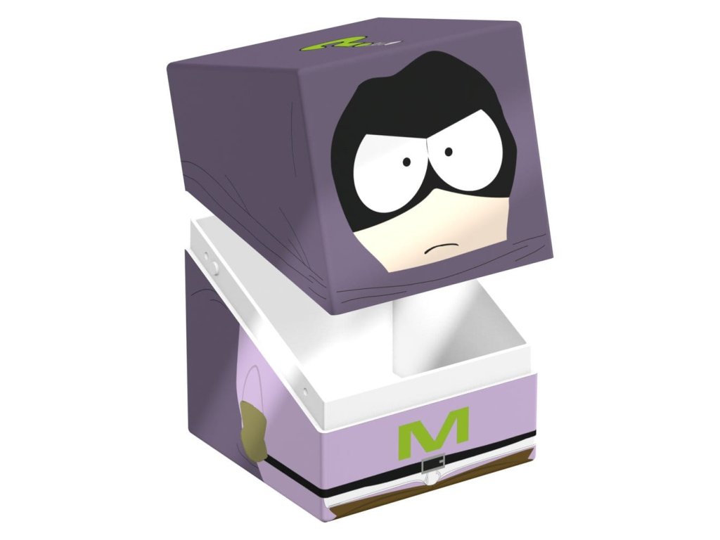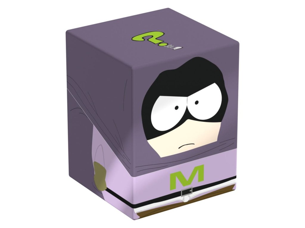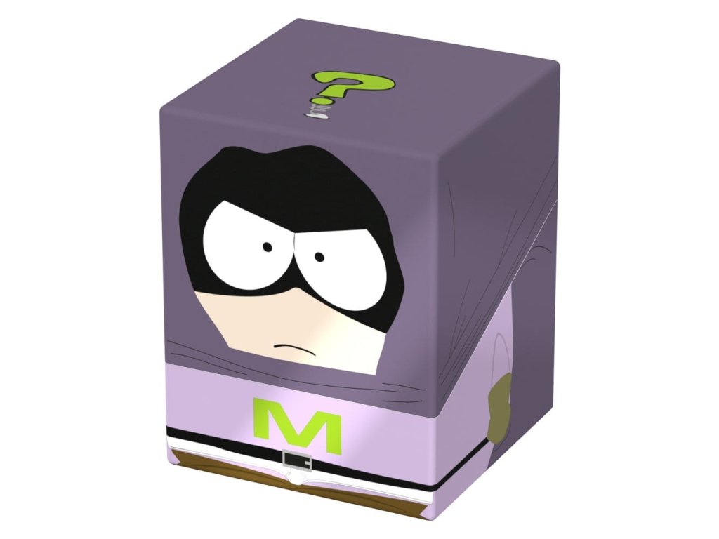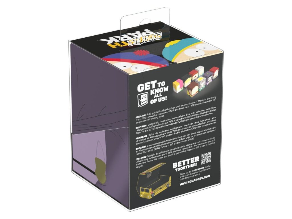 Sběratelská krabička na ukládání TCG balíčků, příslušenství pro stolní hry a/nebo sběratelské předměty. Mysterion Squaroe z edice South Park™ pojme až 100 karet v dvojitých ochranných obalech, pokud se používá jako krabice na karty. Squaroes jsou vyrobeny z 78% obnovitelných zdrojů a dokonale pasují do samostatně dostupného sběratelského případu.