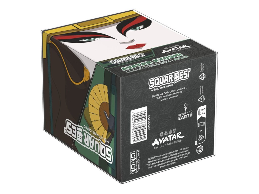 Sběratelský box na uchovávání TCG balíčků, doplňků pro stolní hry a/nebo sběratelských předmětů. Avatar Kyoshi Squaroe z edice Avatar: Poslední vládce větru pojme až 100 karet v dvojitých ochranných obalech, pokud je použit jako krabice na balíčky. Squaroes jsou vyrobeny z 78% obnovitelných zdrojů a dokonale zapadají do samostatně dostupného sběratelského obalu.