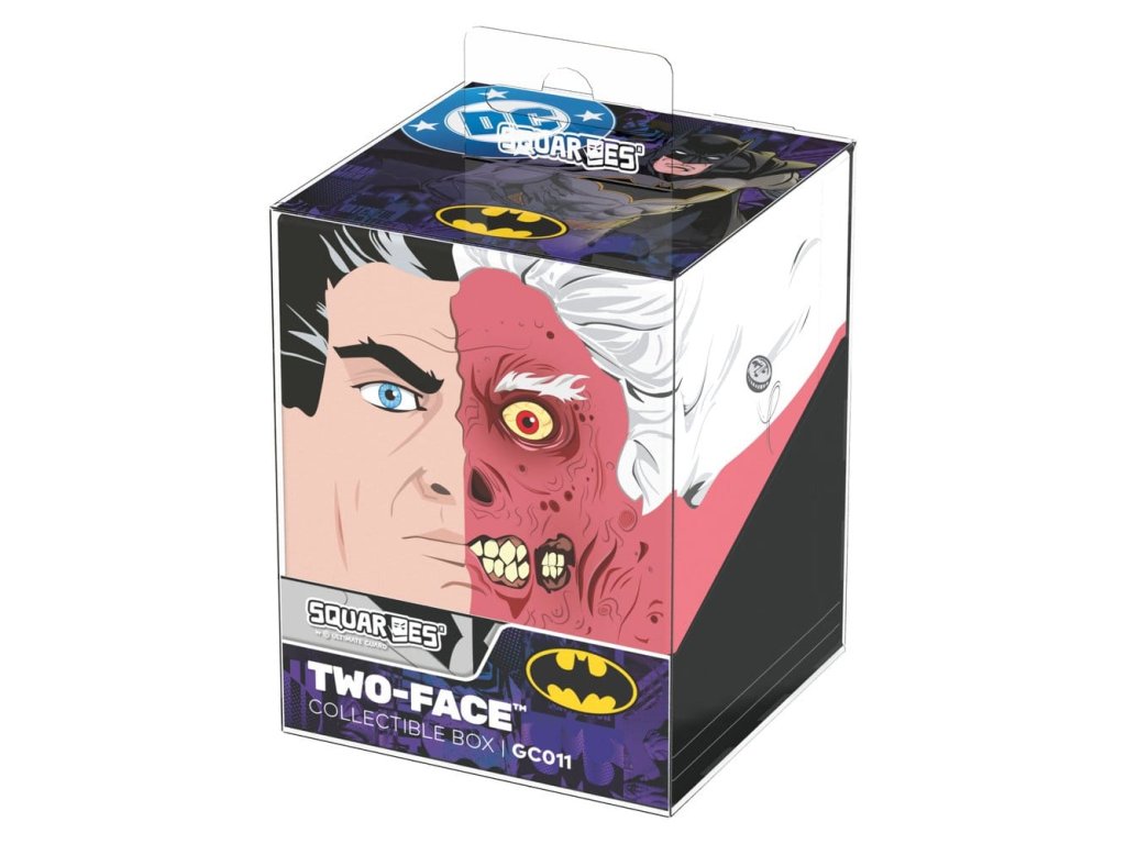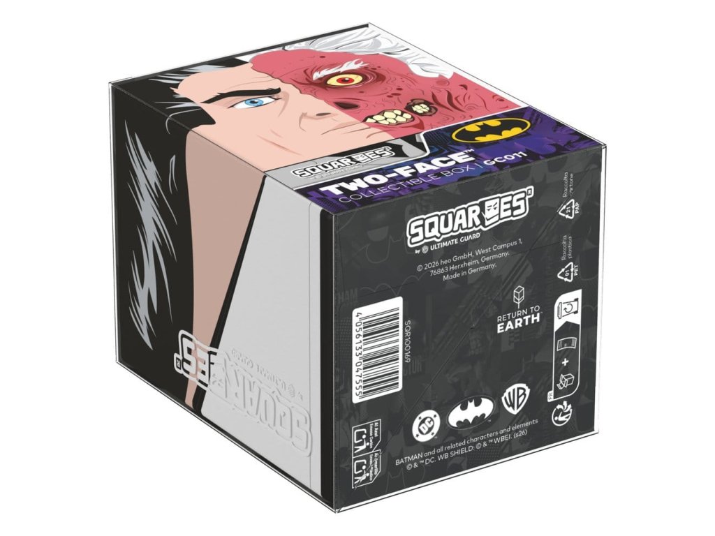 Sběratelská krabička na skladování balíčků karet TCG, příslušenství pro stolní hry a/nebo sběratelských předmětů. Squaroe Two-Face z edice Batman: Gotham City pojme až 100 karet v dvojitých ochranných obalech, pokud je použit jako krabička na karty. Squaroes jsou vyrobeny z 78% obnovitelných zdrojů a perfektně pasují do samostatně dostupného sběratelského pouzdra.