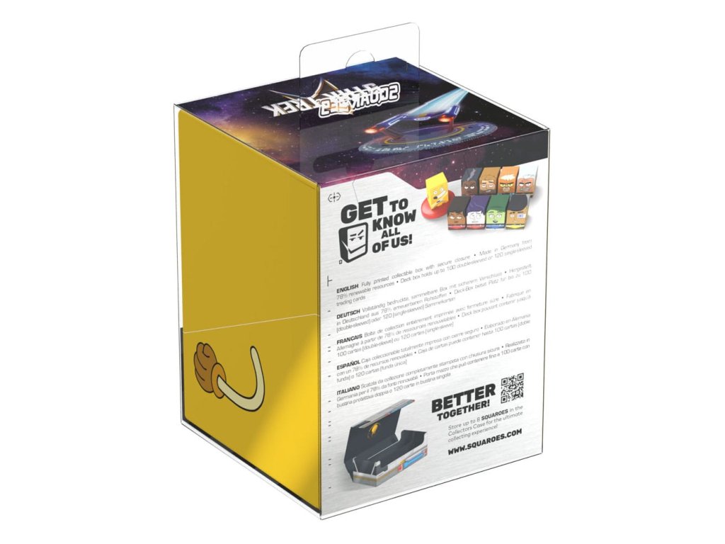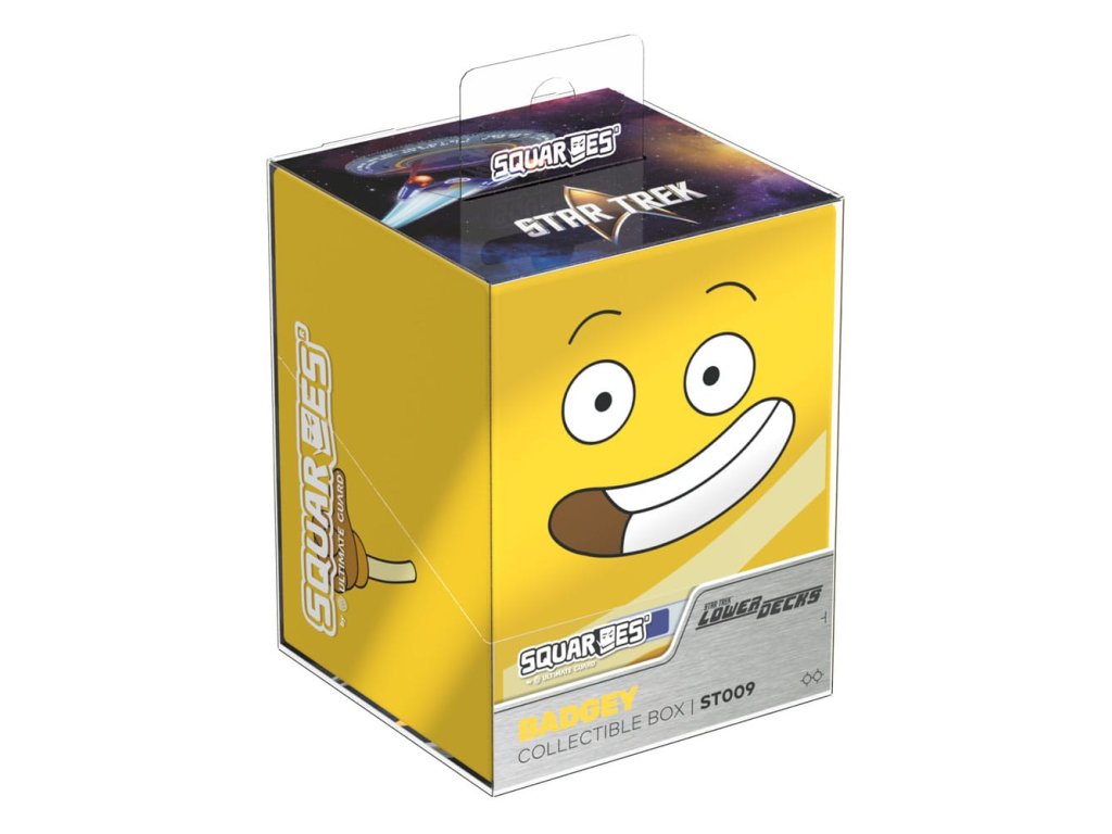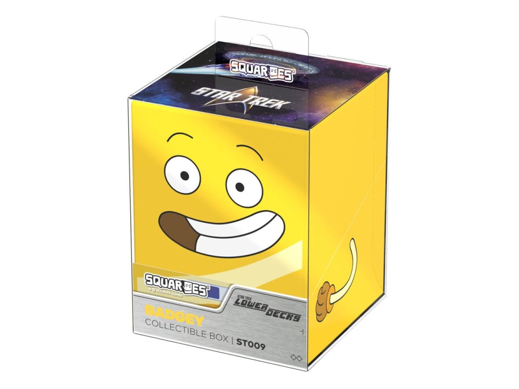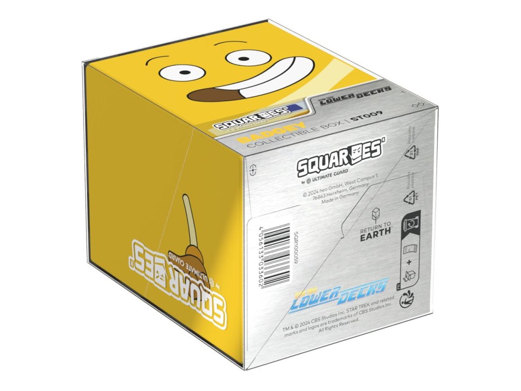 Sběratelská krabička pro ukládání balíčků TCG, stolních herních doplňků a/nebo sběratelských předmětů. Badgey Squaroe z edice Star Trek: Lower Decks™ pojme až 100 karet v dvojitých ochranných obalech, pokud se používá jako obal na balíček karet. Squaroes jsou vyrobeny ze 78 % z obnovitelných zdrojů a perfektně se vejdou do samostatně dostupného Collectors Case.