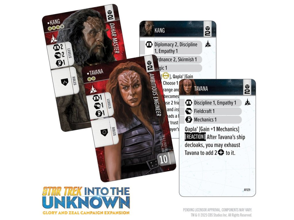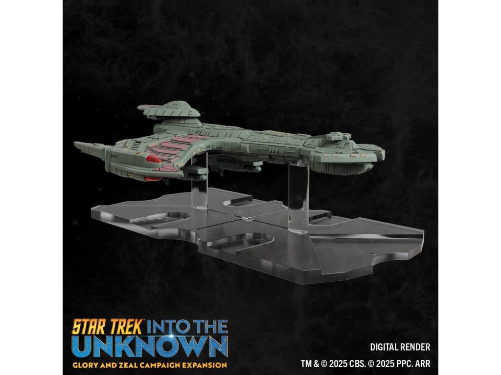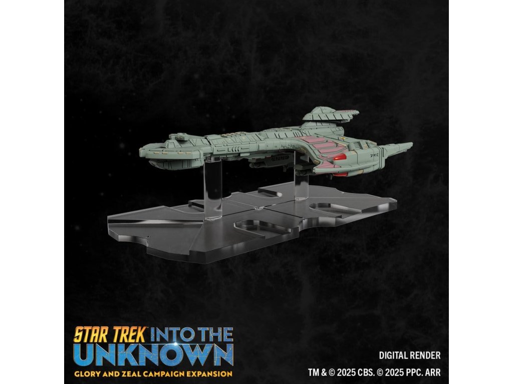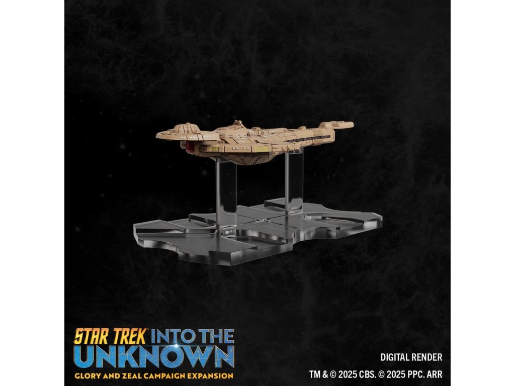 Cardassijská unie je ochotná pracovat pro jakoukoli stranu, pokud to podporuje jejich vlastní programy. S novými důstojníky, hodnostmi, směrnými oznámeními a vybavením tato vzrušující nová frakce nabízí jedinečný způsob hraní! Klingonské impérium je posíleno novými jmenovanými důstojníky, hodnostmi a nahrávajícím vybavením, které poskytují několik nových taktických zdrojů pro každou misi. Co se týče nových hvězdných lodí, toto rozšíření přináší Klingonům třídu Negh'Var, mocnou vlajkovou loď, čímž je posiluje jako samostatnou frakci v kvadrantu. Cardassiané představují novou a nejistou hrozbu, když nasazují křižníky třídy Galor a vojenské nákladní lodi třídy Groumall do předních linií. Tyto lodi poskytují nové a různorodé aktivity, které lze nasadit buď jako žoldáky, nebo jako jejich vlastní frakci ve hře. Najměte nové důstojníky a požadujte unikátní vybavení pro vaše úkolové síly a nasazujte detailní lodě, abyste dosáhli svých cílů. Vyzkoušejte novou kampaň a incidentní mise navržené tak, aby testovaly politickou strategii každé frakce, průzkumnou inovaci a rozhodnost bojovat! Sláva a Cílevědomí rozšiřuje hru STAR TREK™: DO NEZNÁMA - k hraní je potřeba kopie základní sady (89850). Produktový přehled - Pokračujte ve své kampani nebo ji hrajte jako vlastní zážitek vedle základní sady! - Představení "Cardassijské lsti", která přidává nové vrstvy intrik a vyjednávání do vašich kampaní! - Obsahuje čtyři vysoce detailní předem namalované miniatury - včetně třídy Negh'Var, ikonické vlajkové lodi Klingonů! Obsah - 4 předem namalované miniatury (rozměry jsou přibližné) - 1 válečná loď třídy Negh'Var (16,5 cm x 10 cm) - 1 Dravec třídy B'rel s nastavitelnými křídly (3,8 cm x 5,7 cm) - 1 křižník třídy Galor (8,9 cm x 3,8 cm) - 1 vojenský nákladník třídy Groumall (6,4 cm x 2,5 cm) - 4 základny a sady tyček - 4 lodní displeje s kotouči - 24 karet důstojníků - 53 karet k herním účelům - 4 karty mise - 1 kampaně - 2 slídítka pro sledování nepřítomnosti - herní žetony.