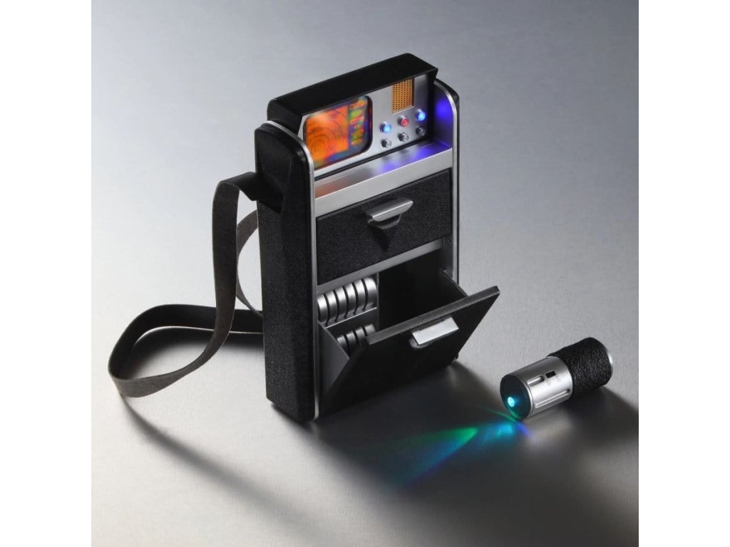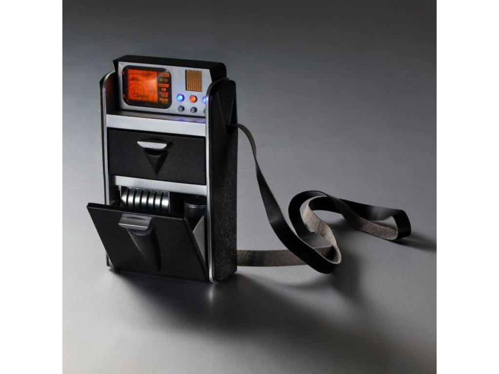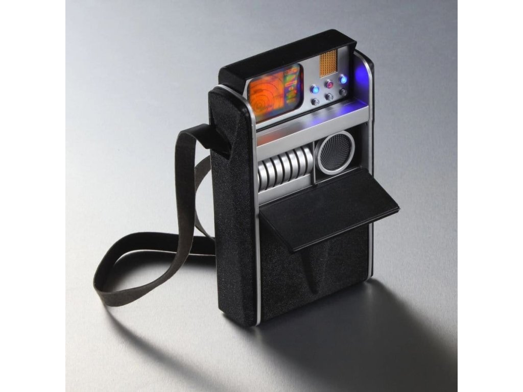 Připravte se připojit k výsadkové party Enterprise s touto detailní hračkou tricorderu z původní série Star Trek s autentickými světly a zvuky. Tricorder je založen na pečlivém studiu původního rekwizitu. Má plnou velikost a měří 7,25 "(19 cm) na výšku a 4,75" (12 cm) šířku. Horní část se otevírá a odhaluje osvětlený displej a tři tlačítka, z nichž každé aktivuje jiné zvukové efekty, včetně původních skenovacích a výpočetních efektů a osmi různých replik přímo z původních epizod. Otevřete horní klapku a objevíte diskety pro nahrávání a moire vzor, který se pohybuje, když stisknete středové tlačítko. Dolní přihrádka obsahuje více odlitkových disků pro nahrávání a samostatný ruční skener, který pulzuje různými barevnými světly, když je aktivovaný. Tricorder používá tři baterie AAA, které nejsou součástí balení.