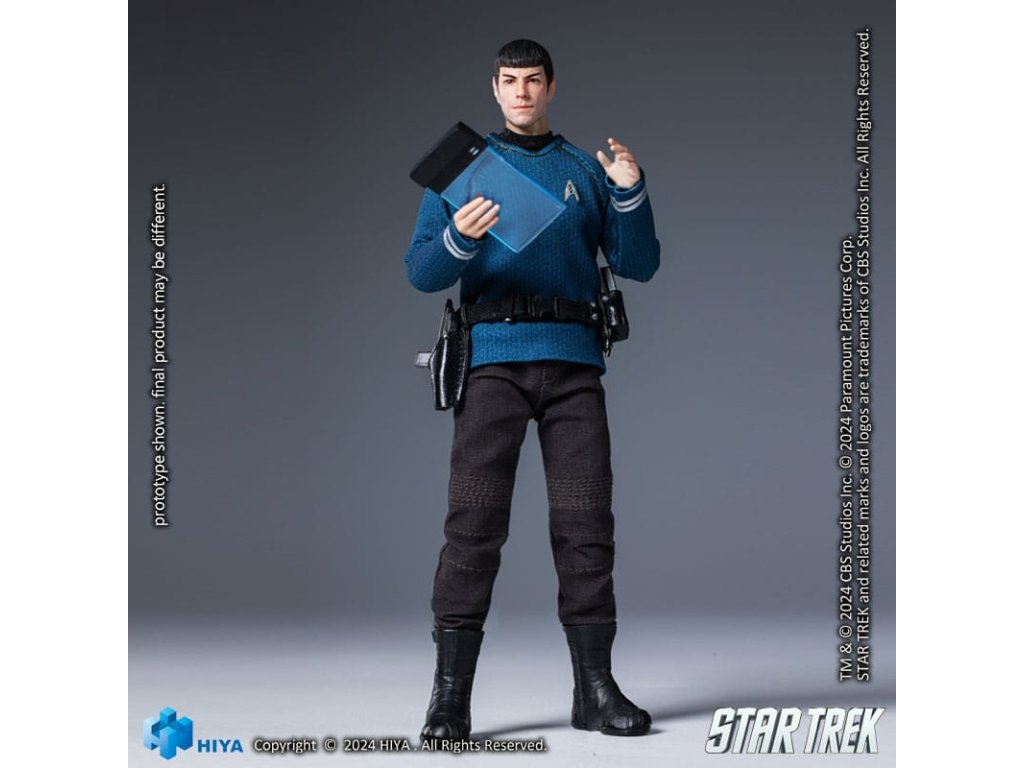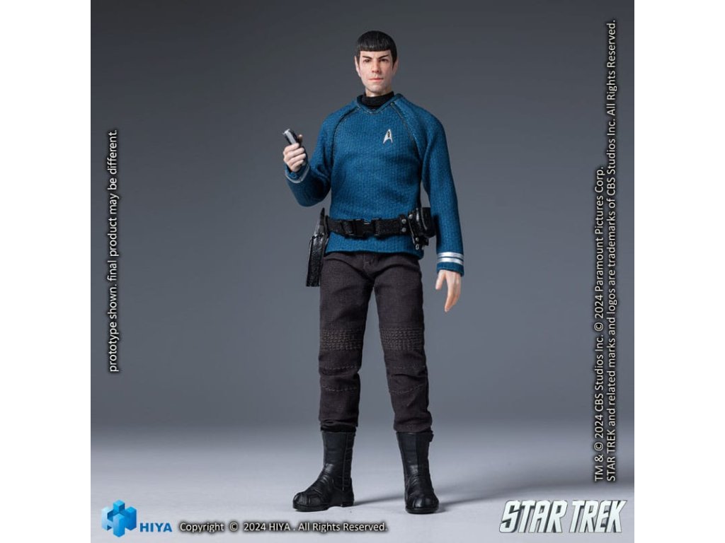S hrdostí oznamujeme novou položku v řadě EXQUISITE SUPER pocházející ze "Star Trek 2009" - 1/12 akční figurku Spocka. V den Jamese T. Kirka se narodil, jeho otec zemřel na poškozené hvězdné lodi v posledním stání proti romulanskému těžebnímu plavidlu, které hledá velvyslance Spocka, který v té době vyrostl na Vulcanu pohrdán svými sousedy za jeho poloviční lidské dědictví. 25 let poté se James T. Kirk stal mladým rebelujícím rváčem. Nouzový stav na Vulcanu a nově uvedená USS Enterprise je obsazena slibnými kadety. Tato posádka zažije dobrodružství v poslední hranici, kde se stará legenda navždy mění, protože začíná nová verze legendy. Tato zcela nová akční figurka Spocka je vysoká 160 mm a věrně reprodukuje jeho vzhled ze Star Treku 2009. Je oblečený v ikonické modré uniformě, která reprezentuje lékařský a vědecký personál. Oblečení, džíny a opasky jsou všechny z opravdového plátna, což zajišťuje jak vynikající pohyblivost, tak estetický dojem. Komunikátor, fázová pistole, dotykový panel a další doplňky jsou všechny precizně detailní. S vysoko pohyblivým tělem, 6 x vyměnitelnýma rukama včetně ikonické vulkanské ruky, a 2 x vyměnitelnýma hlavama, které vám umožní rekonstruovat různé dynamické akční pózy z filmu. Speciální stojan s logem Star Trek, plně vás ponoří do atmosféry vesmíru Star Trek.
