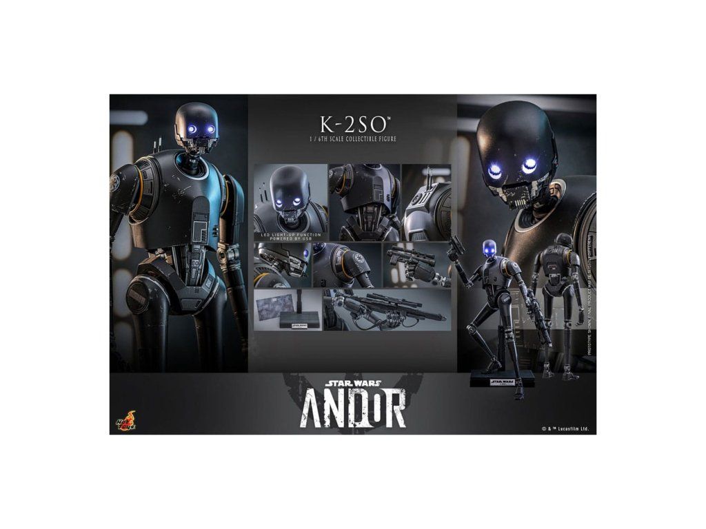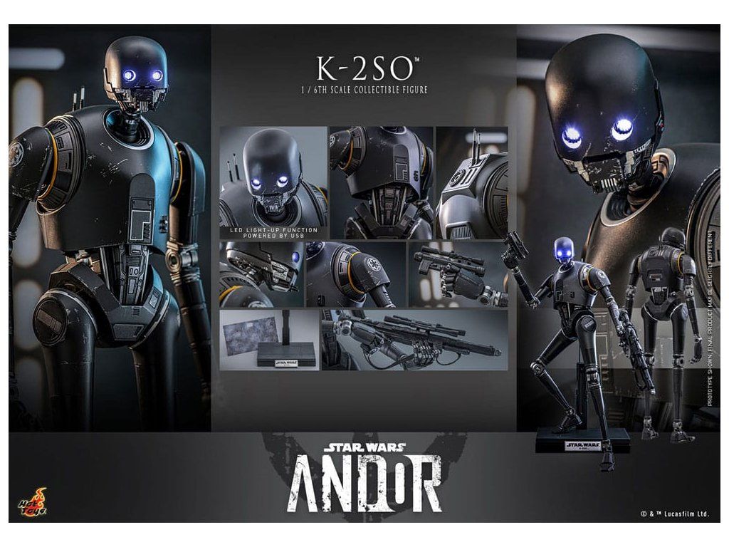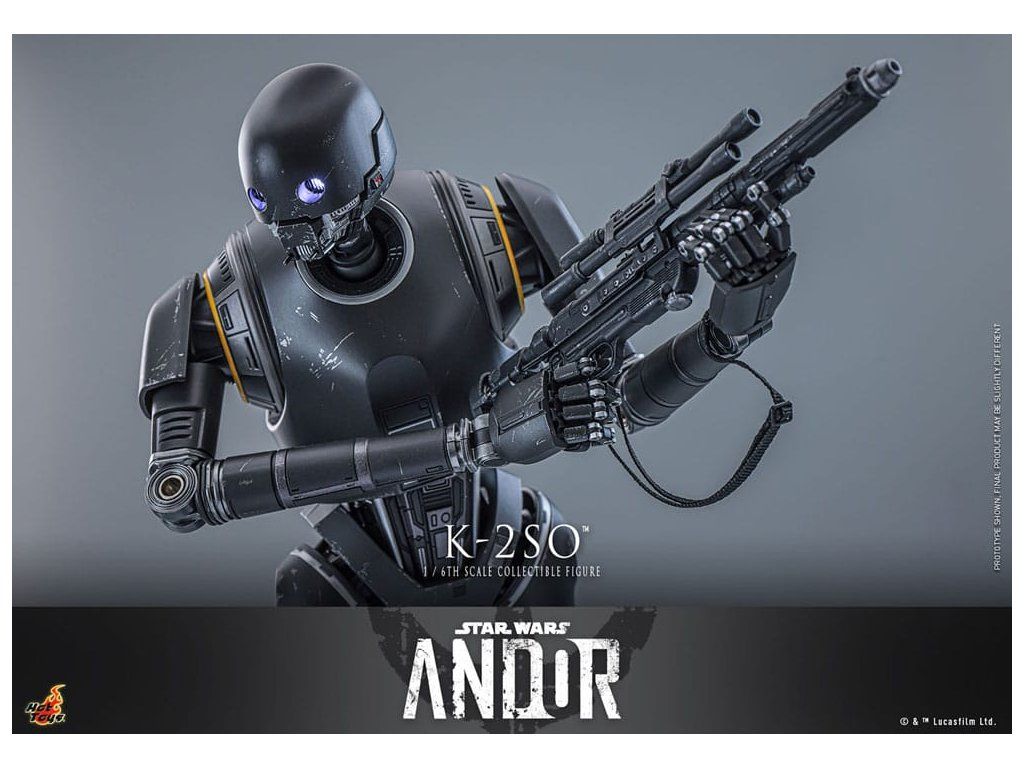 Přeprogramovaný bezpečnostní droid Impéria, nyní věrný alianci, K-2SO je znepokojivé zjevení stojící v tajné základně Rebelů. Pragmatický droid je efektivním vložkovým agentem, neboť se může dokonale vmísit do imperiálních zařízení a předsunutých základen.Sideshow a Hot Toys se těší na představení nejnovější sběratelské figurky K-2SO šesté škály z "Star Wars: Andor™", která dokonale zachycuje podstatu tohoto humoristického, loajálního a oblíbeného droida.Přesně zpracované podle vzhledu K-2SO v 2 sérii seriálu, tato velmi přesná sběratelská figura je vysoká přibližně 36 cm a pyšní se sofistikovanou mechanickou strukturou. Funkce zahrnují oči osvětlené LED diodami s oddělitelnými rolovacími očními bulvami, blasterovou pistoli, blasterový kulomet a speciálně navržený stojan na figurky.Přineste si domů tuto úchvatnou figurku K-2SO a přidejte se k němu vedle Cassiana Andora, když se chystají na vzrušující mise v galaxii!
