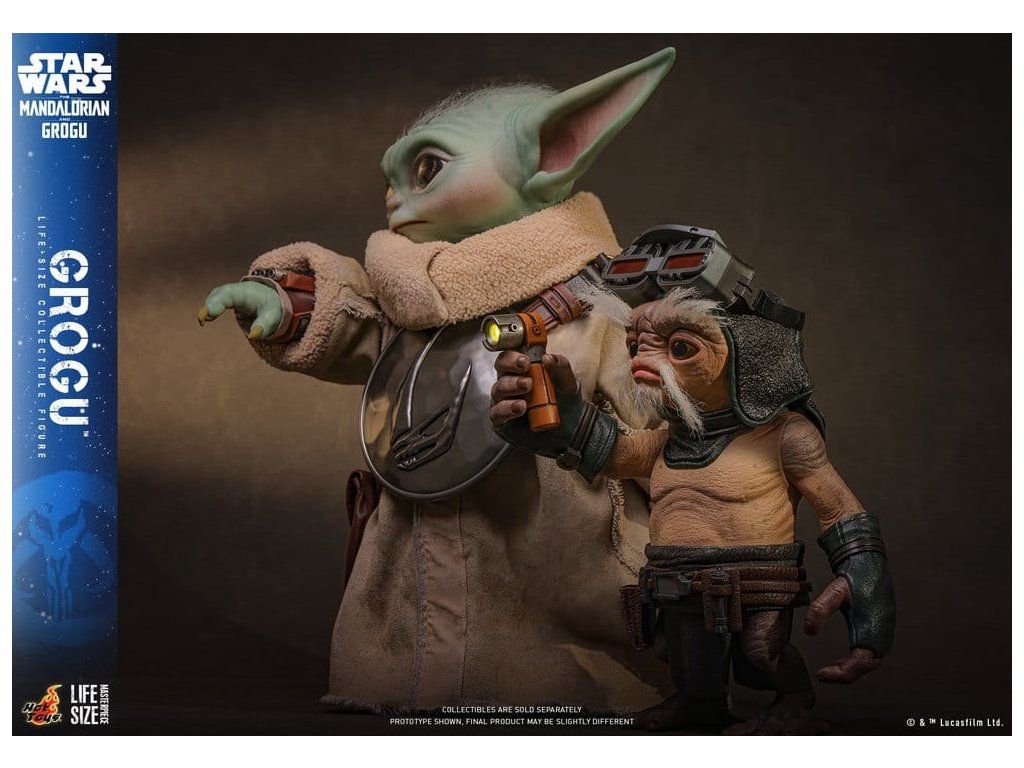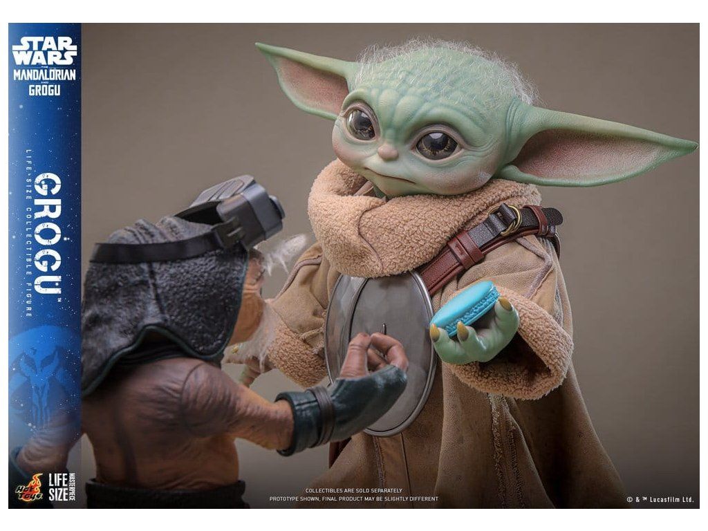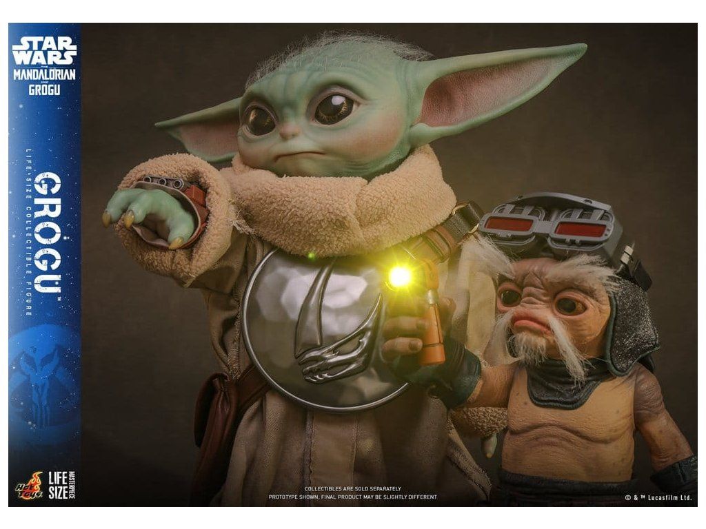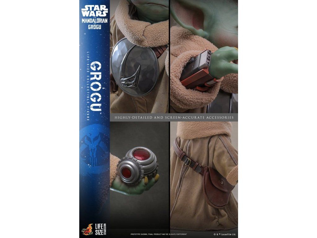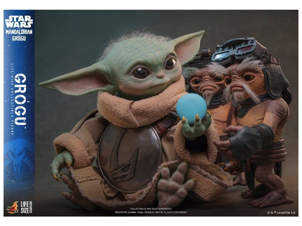 Vazba mezi Mandalorianem a Grogem okouzlila diváky napříč galaxií. Nyní, když jejich cesta pokračuje v připravovaném filmu Star Wars: The Mandalorian & Grogu™, s potěšením Hot Toys představuje novou sběratelskou figurku Grogu™ v životní velikosti! Pečlivě zpracovaná s realistickými detaily, tato figurka v životní velikosti měří přibližně 37,5 cm na výšku. Sběratelská figura obsahuje precizně modelovanou hlavu s filmově přesným výrazem obličeje, detailní texturou kůže a vlasy z bílého vláknového materiálu, které postavě dodávají život. Speciální tělo je vyrobeno z měkkého vinylu a disponuje 9 artikulačními body, což umožňuje sběratelům znovu vytvořit Groguovy akční a roztomilé gesta. Grogu je připraven k boji — je vybaven zápěstním vystřelovačem, který lze připevnit na jeho pravou ruku, a třemi vyměnitelnými rukami pro ztvárnění střelby ze zápěstního vystřelovače, držení předmětů nebo mocných gest při používání Síly. Dále figurka obsahuje gravitační nálož ("grav charge") a malé výbušné zařízení typu "grav charge", obojí magneticky připevnitelné k jeho levé ruce, což umožňuje sběratelům znovu vytvořit napínavé scény. Sada je bohatá na doplňky, včetně popruhu (bandolier) s kapsičkou a odnímatelného rondelu. Rondel má velmi detailní vzor na zadní straně a může být samostatně magneticky připevněn na Groguovu hruď. A pro nádech jeho hravé povahy je součástí i magnetická modrá makrónka, kterou může držet! Připravte se na další kapitolu — nový Grogu v životní velikosti je připraven dnes rozšířit vaši sbírku Star Wars! Velikost: 37,5 cm (14,76 palce).