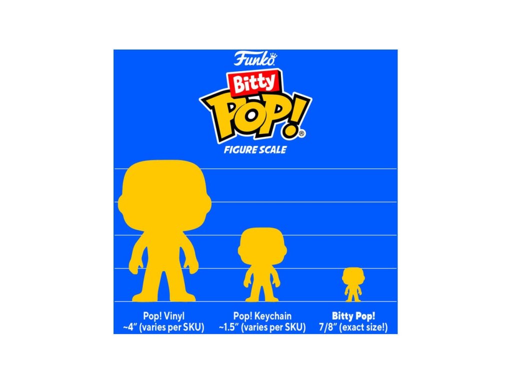 Vaše oblíbené postavičky Pops! byly zmenšeny na Bitty Pops! Rozšiřte si svou sbírku tímto výběrem figurek Bitty Pop! představující vaše nejmilejší postavy z kreslených filmů! Každý 4-balíček obsahuje jednu vzácnou nebo hyper vzácnou tajemnou figurku Bitty Pop! pro doplnění série. Bitty Pops! jsou balené v tvrdých akrylátových obalech s odnímatelnými dnem. Odnímatelné dno slouží jako akrylátová základna, na kterou jsou figurky Bitty Pop! přilepeny.