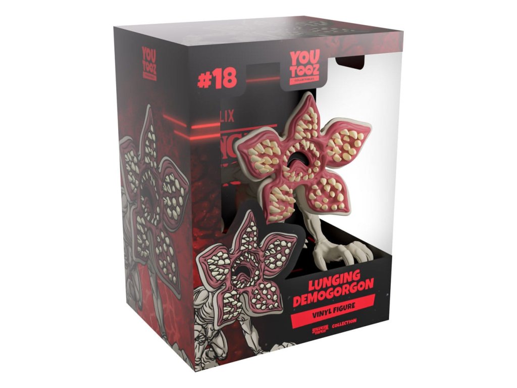 Běžte .... BĚŽTE TEĎ! PŘICHÁZÍ! V předklonu o výšce 3,9 palce připravený na hrůzný útok, jeho masitý rudý obličej se otevírá do květujícího kruhu plného ostrých zubů, zatímco zakřivená černá tlamka se nachází v jeho středu. S ostrohrannými kostmi a výrazným svalstvem napínající pokožku svého vyhublého šedého těla, tenké žíly se kouří z zad jejich hlavy a přes jejich trup až k obrovským pařátům na rukou a nohou. Exteriér jejich obalu zobrazuje červený vektor nich proti černému pozadí s jemnými úponky, které se přes něj plazí, zatímco neonově červené čáry se v interiéru šíří vodorovně. Tyto se pak přesunou na ochranný rukáv, kde lze jejich figurku vidět skrze velké průhledné okno na přední straně obalu. Tento sběratelský předmět je dodáván v matném, reliéfním, ochranném vnějším obalu a v měřítku plastovém chrániči pro maximální ochranu během dopravy. O Stranger Things: Stranger Things je americký vědeckofantastický hororový televizní seriál vytvořený bratry Dufferovými a vysílaný na Netflixu. Show se odehrává v 80. letech ve fiktivním městě Hawkins v Indianě. Série se zaměřuje na skupinu přátel, kteří vyšetřují mnoho nadpřirozených událostí, které se ve městě dějí. Navazují spojení s nepřátelskou alternativní realitou zvanou "Vzhůru nohama" a musí najít způsoby, jak z ní uniknout. Orientační datum vydání: červenec 2026