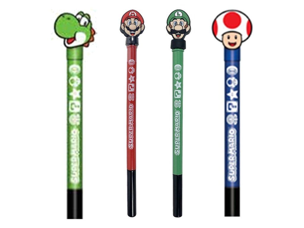 Oficiálně licencovaný vystavovací stojan Spinning Pens od společnosti Pyramid ze série Super Mario s motivem točících se per.