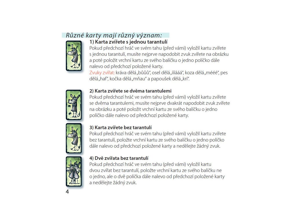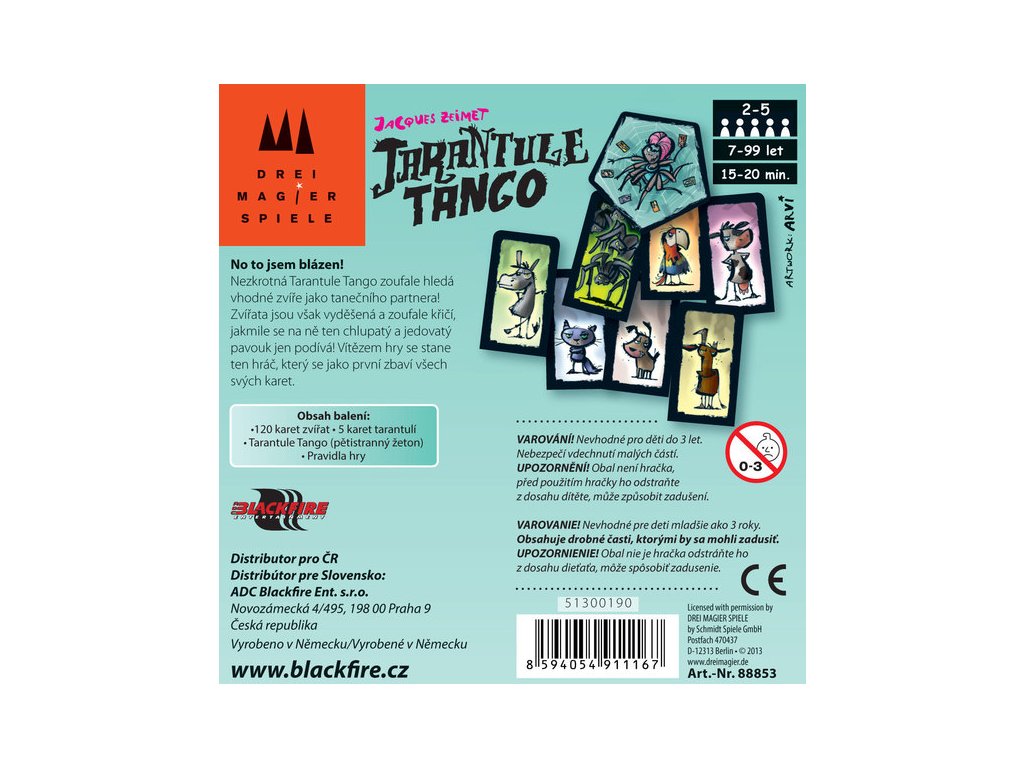 Nezkrotná Tarantule Tango zoufale hledá vhodné zvíře jako tanečního partnera! Zvířata jsou však vyděšená a zoufale křičí, jakmile se na ně ten chlupatý a jedovatý pavouk jen podívá! Vítězem hry se stane ten hráč, který se jako první zbaví všechsvých karet.