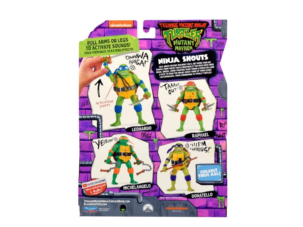 Mluvte s 14 cm vysokou akční figurkou Ninja Křik Leonardo a on vám odpoví - ve svém původním filmovém hlasu! Leonardo je vedoucí Želvy v modrém a nyní také středoškolský student! Nyní, když Leo a jeho bratři opouštějí hnízdo - nebo spíše kanály - je zatraceně rozhodnutý proměnit je v tým, který bojuje proti zločinu, a vést je k vítězství! Taháním za jeho ruku nebo nohu se přehrají devět různých výroků nebo pět různých zvukových efektů! Pokud ho budete držet déle, protáhne své kouzla nebo je opakuje! Tento tým Želv bude prostě neporazitelný. - AUTENTICKÝ: Leonardo je vysoký 14 cm a autenticky modelovaný, jak se objevuje ve filmovém trháku. - DOPEŘE MĚLUJE: Táhněte jeho pravou ruku nebo levou nohu na pružině, aby mluvil - stejným hlasem, kterým se v průběhu filmu Leo projevoval. - FUNKCE DRŽENÍ: Když táhnete a držíte Leo's ruku nebo nohu, slovo, které mluví, je protáhnuto a slabiky se opakují, dokud nepustíte - poté se slovo a věta dokončí a následuje plný akční zvuk boje. - ROZSAH VARIANT: Akční figurka Leonarda imponuje devíti výroky a pěti různými bojovými zvuky. 3x baterie LR44/AG13 jsou součástí balení.