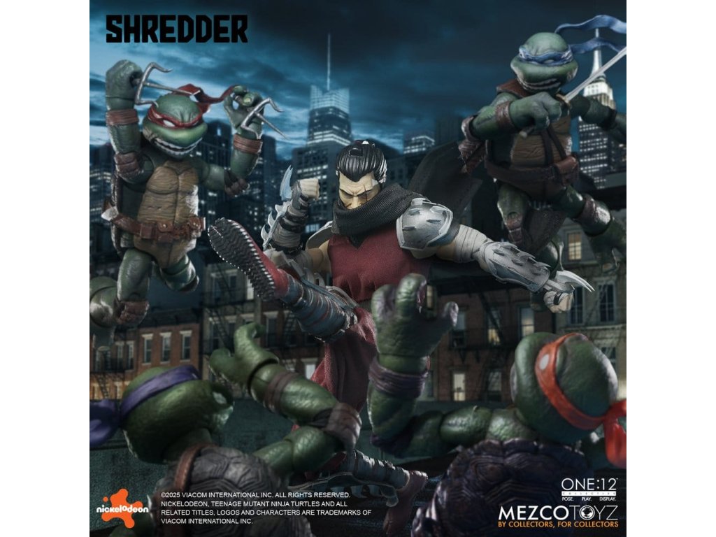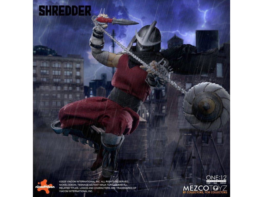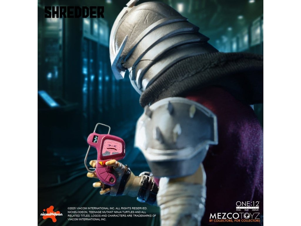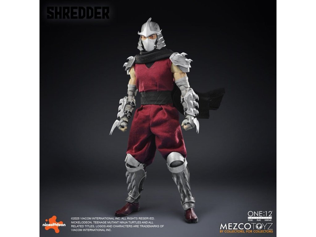 Obávaný vůdce Foot Clanu sestupuje do One:12 Collective! Mistr ninjutsu a přísahalý nepřítel Želv, Shredder se objevuje s impozantním arsenálem, vyměnitelnými portréty, měkkým zbožím a plným nákladem smrtící výbavy. Jeho ikonická přilba Kuro Kabuto je součástí ve dvou jedinečných stylech, spolu s portrétem bez masky Oroku Saki, který ukazuje muže za kovem. Shredder je v protibodové vrstvené zbroji se snímatelnými částmi s čepelemi připravený na totální dominanci. Od jeho meteorového kladiva s reálným kovovým řetězem až po termické granáty a katanu, každá zbraň odráží nemilosrdnou efektivitu Foot Clanu. Různé vyměnitelné ruce mu umožňují držet, pokynout, útočit a zastrašovat v jakémkoli postoji. Po vzestupu ve Foot Clanu a získání vedení skrze strach, moc a přesnost, Oroku Saki, nyní známý pouze jako Shredder, ovládá kriminální podsvětí ze stínů. Jeho mise: zničit Želvy ninja mutanta a obnovit nadvládu Foot Clanu. FIGURKA SHREDDER ONE:12 COLLECTIVE OBSAHUJE: - Tělo One:12 Collective s více než 28 body pohybu - Ručně malované autentické detaily - Přibližně 17 cm vysoký - 3 hlavové portréty - Hlava s přilbou Kuro Kabuto, výchozí - Hlava s přilbou Kuro Kabuto, bojově připravená - 1 odhalená hlava VÝMĚNNÉ RUKY: - 12 vyměnitelných rukou - 1 pár pěstí (L&R) - 1 pár rukou pro pózování (L&R) - 1 pár rukou pro držení (L&R) - 1 pár rukou na držení katany (L&R) - 1 ruka na držení komunikátoru (L) - 1 ruka na držení termické granátu (R) - 1 ukazující ruka (L) KOSTÝM: - Obvod hrudi s tkaninovými vrstvami - Ramenní nášivky - Předloktí gaunlets - Shin armor - Tkaný overal - Pás se závěsem na zbraně PŘÍSLUŠENSTVÍ: - 1 meteorové kladivo s reálným kovovým řetězem - 1 katana - 1 pochva katany - 3 termické granáty - 1 komunikační zařízení - 1 displej One:12 Collective s logem - 1 nastavitelný displejový příspěvek One:12 Collective Figurka Želvích Ninja Mutantů Shredder od One:12 Collective je zabalená v krabici přívětivé pro sběratele, navržené s ohledem na sběratele. Orientační datum vydání: říjen 2026