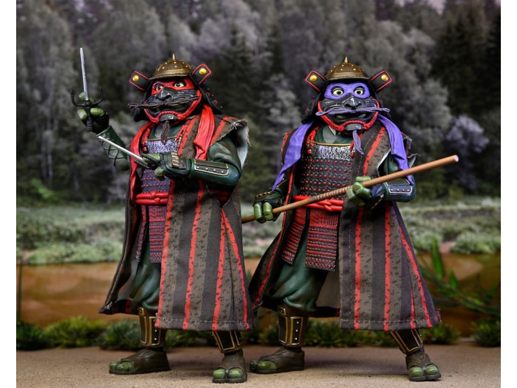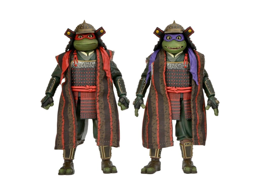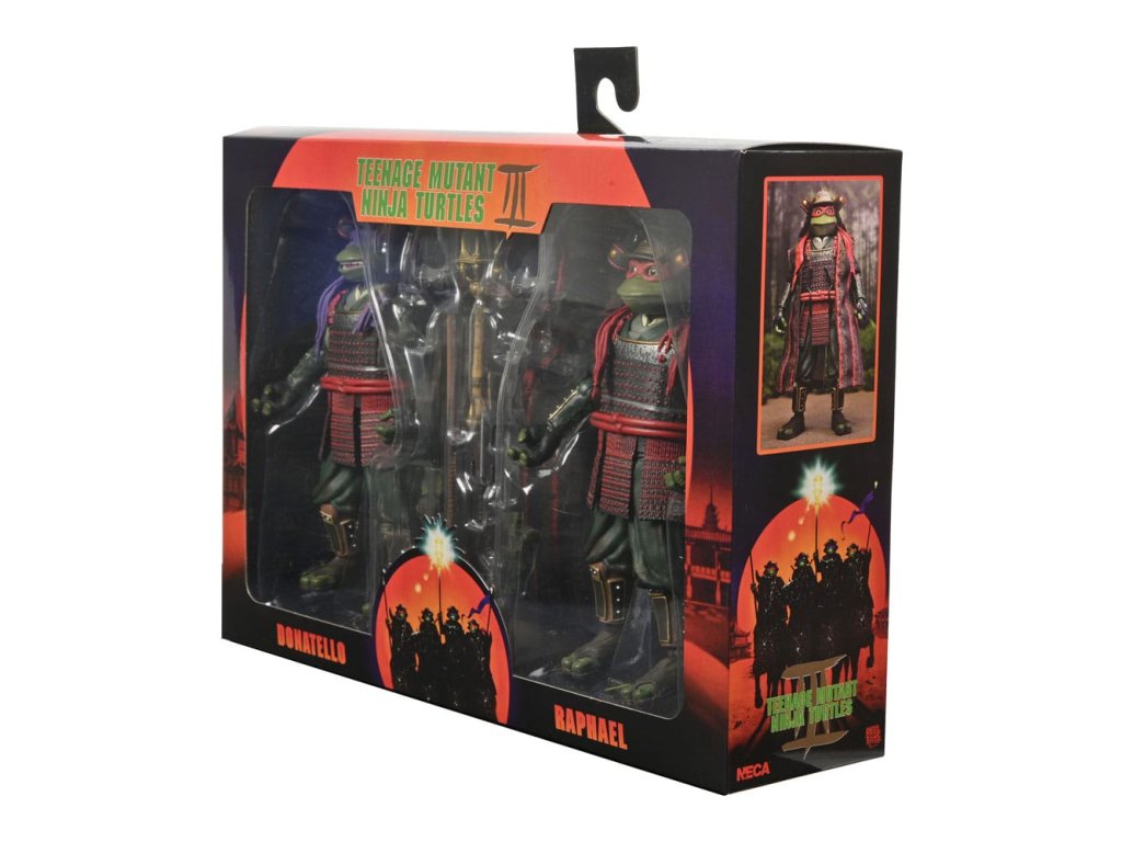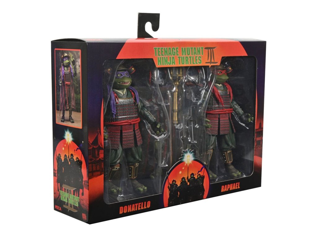 Doplněte svou sbírku filmové trilogie NECA TMNT těmito úžasnými dvojbaleními akčních figurek z Teenage Mutant Ninja Turtles III! Získejte Donatella a Raphaela v samurajském oblečení jako naprosto radikální akční figurky v měřítku 18 cm. Figurky jsou dodávány s vyměnitelnými rukama, 2 masky oni, 2 sáis, bo staff a Časovým žezlem. Balení s okénkem pro lepší prezentaci.