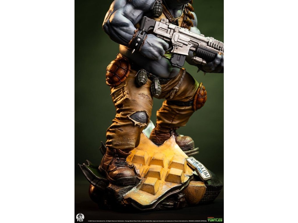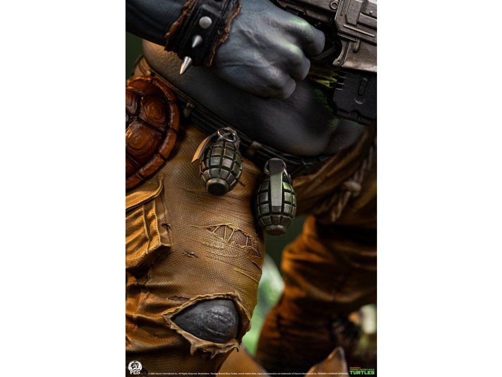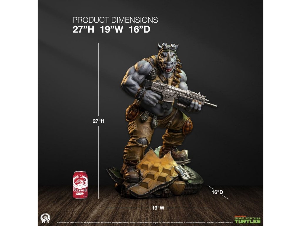 Společnost Premium Collectibles Studio s hrdostí představuje Rocksteady, nejnovější přírůstek do naší řady soch TMNT Legends v měřítku 1:3. Tento silový mutant-nosorožec stojí impozantních 27 palců, plně vybavený a připravený k bitvě. Rocksteady je připravený k akci s jeho těžkým útočným blasterem v ruce na vraku slavného vozu party želv. Tato vysoce detailní socha disponuje nádherným sochařstvím v celém svém rozsahu, od kůže připomínající texturu kůže Rocksteadyho až po mechanické detaily jeho blasteru a dalších zbraní. Tento mutant je vybaven řadou nádherně ztvárněných doplňků včetně granátů, chrániče na koleno ve tvaru želvího krunýře, obrovského nože připevněného na jeho zádech a bandolieru naplněného těžkou dělostřeleckou municí. Socha Rocksteady 1:3 také zahrnuje výměnný portrét bez jeho vojenského stylu čepice a brýlí, což sběratelům nabízí více možností zobrazení. Udělejte ve své sbírce místo pro tohoto bouřlivého nosorožce a dnes si pořiďte sochu TMNT Legends Rocksteady v měřítku 1:3 od společnosti PCS! Rozměry: 68,6 x 48,3 x 40,6 cm (27"H x 19"W x 16"D) Velikost edice: 350
