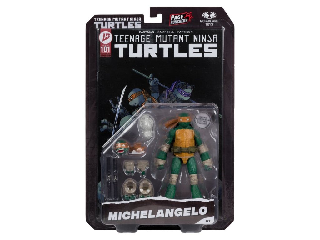 Vítejte v novém světě Želv Ninja! Po kataklyzmických událostech TMNT číslo 100 zjistily Želvy, že se New York City dramaticky změnil - nové frakce a nepřátelé jsou na vzestupu a spojenci jsou vzácní. Želvy zjišťují, že aby přežily, budou muset spolupracovat jako nikdy předtím! - Akční figurka o rozměru cca 13 cm je velmi flexibilní a je založena na obraze Želv Ninja nakladatelství IDW Publishing - Obsahuje nunchaku, alternativní hlavu, 2 extra ruce, 2 extra nohy a kočku Clunk - Součástí balení je i exkluzivní reprint komiksu „Page Puncher Edition“ od nakladatelství IDW Publishing - Blistrové balení inspirované Želvami Ninja tematikou PAGE PUNCHERS - Sbírejte všechny figurky PAGE PUNCHERS od McFARLANE TOYS ™ x ŽELVY NINJA ™. Orientační datum vydání: únor 2026