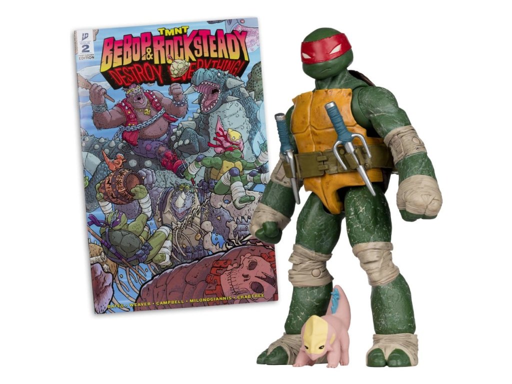 Bebop a Rocksteady cestují do minulosti a setkávají se se svými bývalými já! Co by se mohlo pokazit? Navíc: Dinosauři!!- 13cm akční figurka s ultra pohyblivými končetinami je založena na obrazech Teenage Mutant Ninja Turtles od IDW Publishing - Součástí jsou alternativní portrét hlavy, 2 navíc ruce, 2 navíc nohy, 2 Sai a domácí dinosaurus - Také obsahuje exkluzivní reprint komiksu 'Page Puncher Edition' z IDW Publishing- Balení Teenage Mutant Ninja Turles PAGE PUNCHERS na blisterové kartě- Sbírejte všechny figurky PAGE PUNCHERS od McFARLANE TOYS™ x TEENAGE MUTANT NINJA TURTLES™. Orientační datum vydání: únor 2026