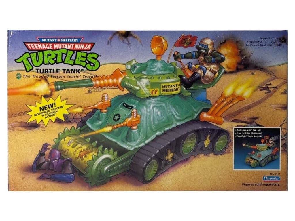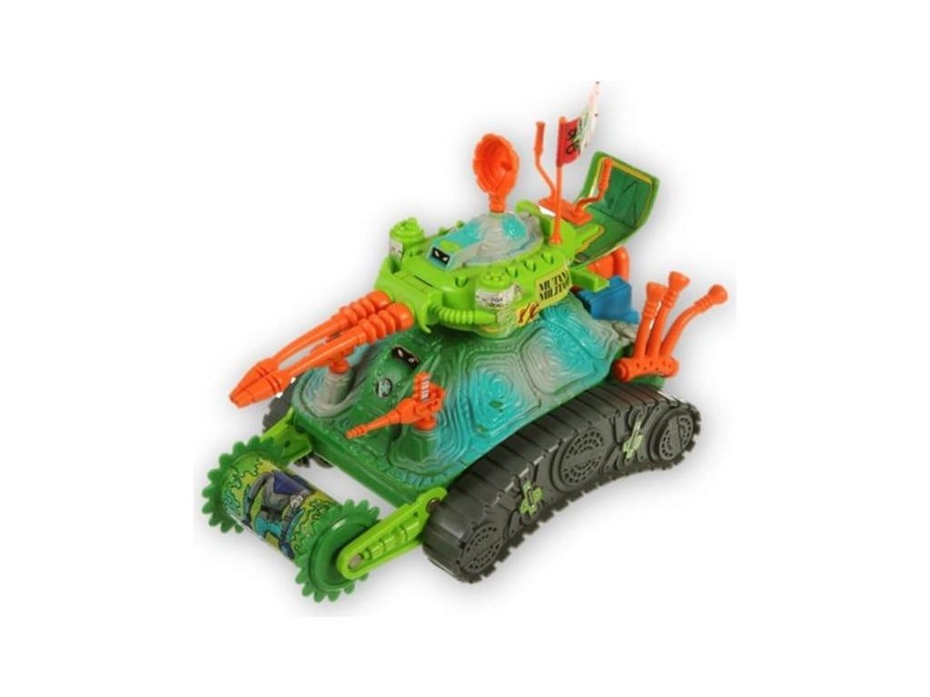 Pozor! Poslouchejte dunění, mutanty! Cítíte ten řev! Vzdávejte holdi želvímu tanku - noha klanu drtícího pásového teroru! Užívejte si cestu v naprostém velení, zatímco želví tank snadno umlátí Nohu. Nic nemůže zastavit tuto zshellnutou super drtičku - ani fanatické vojáky z Nohy. Sledujte mutantní vojenské želvy, jak se pustí do ploštiče Nohy - ideální pro palačinkování punkáčů (mimochodem, podplukovník Leo má tu část nejraději!) A vířící želví věž se plně točí, aby odpálila padouchy. Přidejte k tomu všechno dvojité mutantní kulomety a rozpraskávající se dělo a máte tu nejlepší mutantní vojenský stroj. S propojením s kanalizačním ponorkou a želvičím vrtulníkem nemohou být vojenské mutanty poraženy. Pusťte se do míst, které způsobují chaos - zaslouží si to. Rozchod! Rozměry cca. 25 x 14 cm (baterie nejsou součástí).