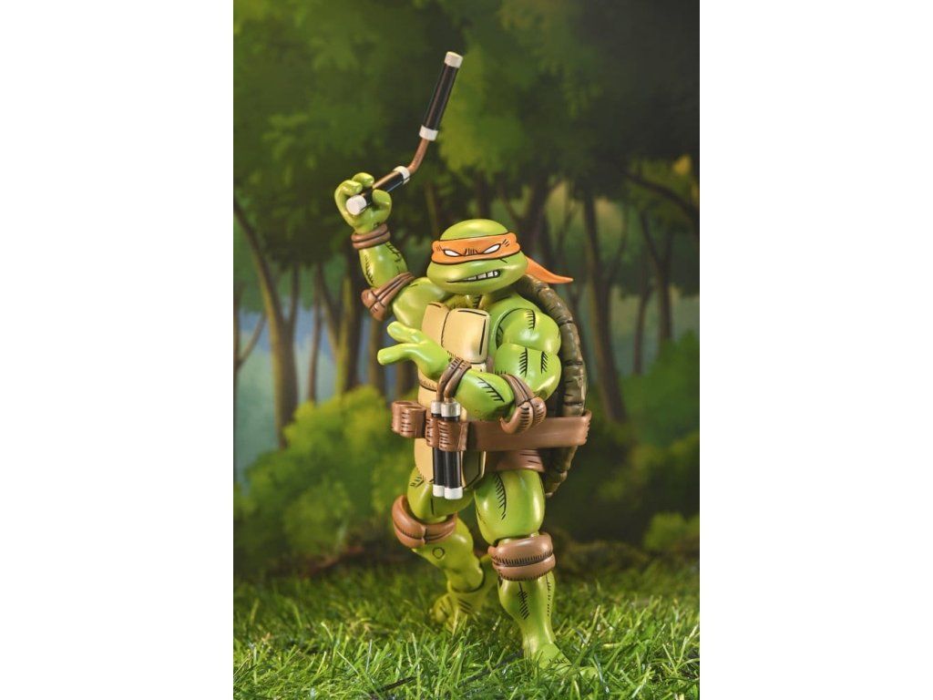 Oslavte více než 40 let komiksů Teenage Mutant Ninja Turtles a Usagi Yojimbo! Tato Ultimate figurka Michelangelo je založená na díle legendárního umělce Stana Sakaiho a byla vyrobena ve spolupráci s vydavatelstvím Dogu Publishing. Nabízí zcela nové modelace a autentické, stylizované komiksové provedení. Figurka NECA v měřítku 7 palců obsahuje vyměnitelné hlavy a ruce a jeho charakteristické nunchaky. Dodává se v balení vhodném pro sběratele — krabici s průhledným okénkem a otevírací přední klopou. Velikost: 17,8 cm (7,00")