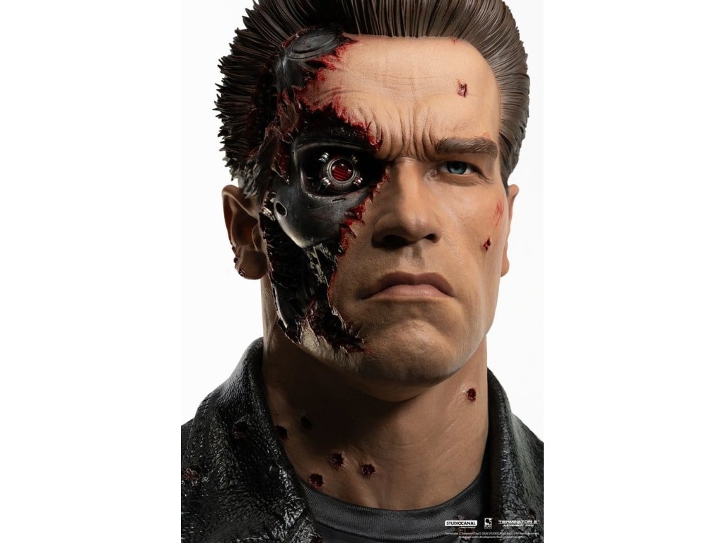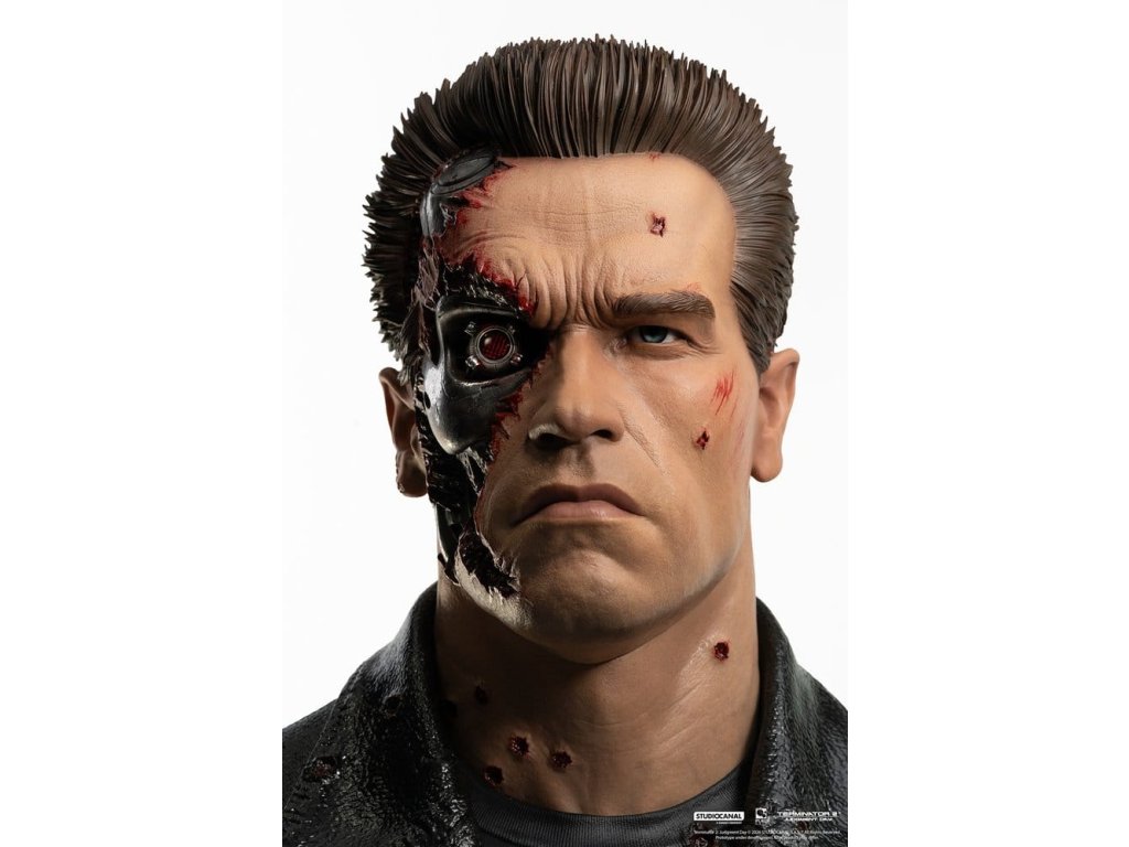 "Pojď se mnou, pokud chceš žít." - TerminátorPureArts je zpátky s Terminátorem 2 T-800 Model 101 Bitvou Poškozenou Edicí! Tento úchvatný sběratelský předmět zachycuje brutální intenzitu kybernetického vraha, kterého proslavil Arnold Schwarzenegger. Jeho živé tkáně, syntetická kůže, jsou strženy a odhalují lesklý endoskeleton bojový podvozek skrytý pod ním. Každý detail vypráví příběh neúprosného boje, od střelných ran a roztrhané kůže odhalující mechanické součásti až po prasklý skleněný obličej a krvavé oblečení. Pravé oko se nebezpečně rudě rozsvítí LED diodou, což přivádí k životu strojovou přesnost uprostřed jizev války. Nápadný středobod, který nesmrtelně vyobrazuje T-800 v jeho nejikoničtější, bojově zničené formě. HIGHLIGHTS PRODUKTU - Hyperdetajlní socha T-800 s podobiznou Arnolda Schwarzeneggera - Odstranitelný přední obličej odhalující detaily endoskeletonu uvnitř - Plně propracovaný endoskeleton bojový podvozek zezadu a ze stran - Realistická bitvou poškozená kůže a tkáň, odhalující mechanické součásti pod ní - Odstranitelné prasklé sluneční brýle - LED světlo v odhaleném oku - Realistické skleněné oko
