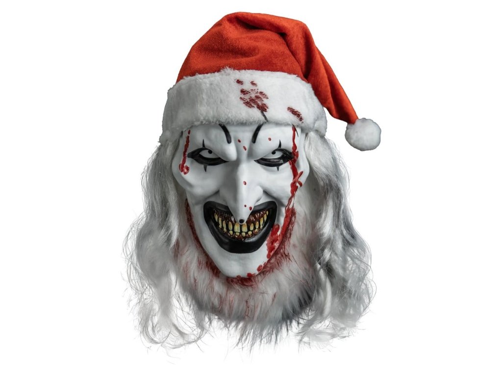 Studio Trick or Treat je hrdé na prezentaci oficiálně licencované injekční masky Santa Art the Clown Deluxe z Terrifier 3. Tvrdá plastová obličejová maska má elastický popruh pro pohodlné nošení. Obsahuje podpisové bílé krytí hlavy klauna Art s připojeným kloboukem pro realistický vzhled, perfektní na Halloween nebo na váš příští maraton Terrifier.