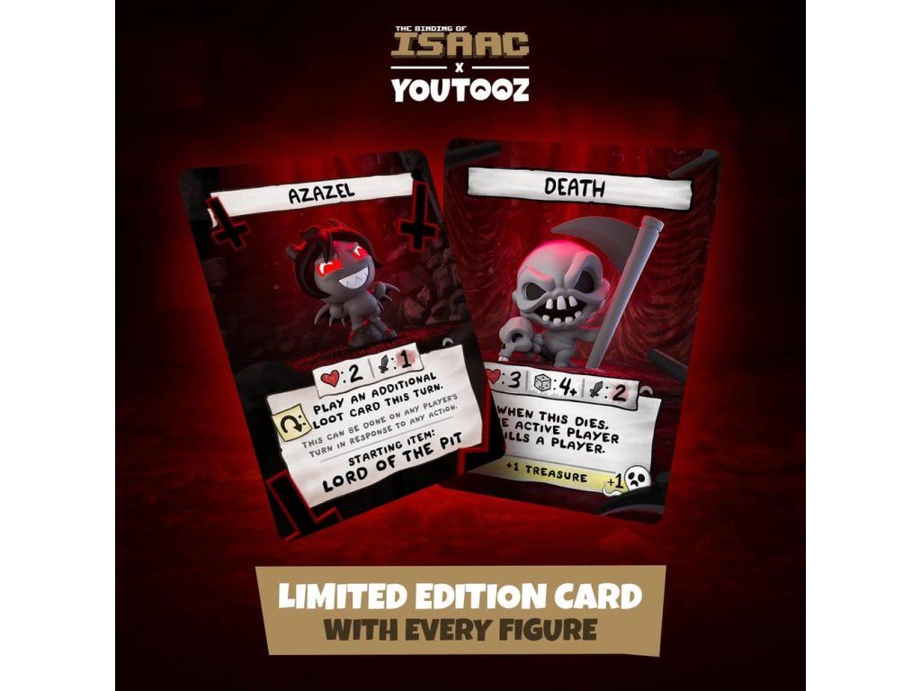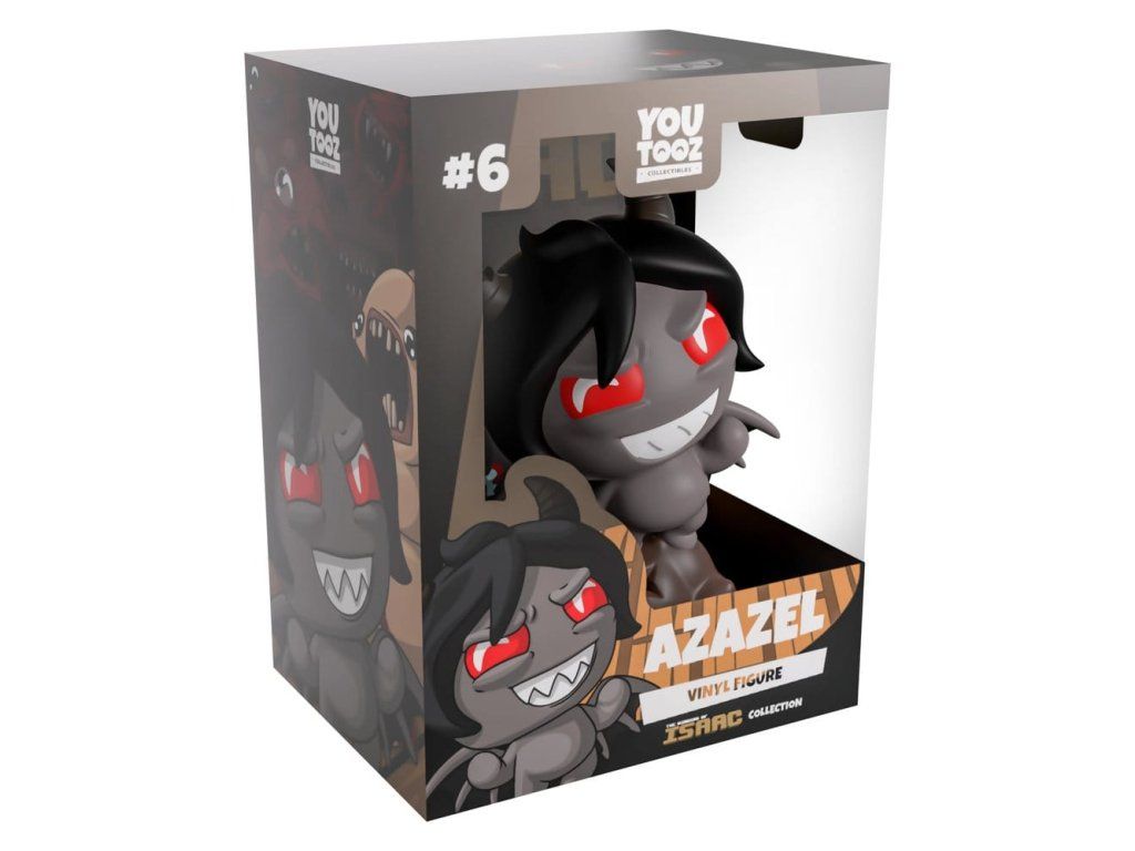 "Probuďte v sobě démona" Azazel nemusel uzavírat dohodu s ďáblem kvůli vlastní Youtooz figurce, ale to mu nezabránilo! Stojí na kusu uhlí a měří 9 cm. Má zubatý zlověstný úšklebek a jasně červené oči, z uhelně černých vlasů mu trčí pár rohů. Kulaté ruce vycházejí z malého tmavě šedého těla, zatímco ostnatá křídla s černou membránou se rozprostírají z každého ramene. Vnější strana balení zobrazuje ošumělý obrázek figurky na krvavé dřevěné podlaze, zatímco vnitřek je uhelně černý s jediným reflektorem svítícím na figurku. Ochranný obal pak nahlíží do místnosti plné hrnců a truhly a figurka je viditelná skrz velké průhledné okénko na přední straně. Tento sběratelský kousek je dodáván v matném, raženém ochranném obalu a v plastovém ochránci na míru pro maximální ochranu při přepravě. O hře The Binding of Isaac: The Binding of Isaac je náhodně generovaná akční RPG střílečka s výraznými roguelike prvky, kterou vyvinuli Edmund McMillen a Florian Himsl. Hráči sledují Isaaca na jeho cestě za podivnými poklady, které mění jeho podobu, dávají mu nadlidské schopnosti a umožňují mu bojovat proti tajemným bytostem, objevovat tajemství a probojovat se ke spáse.