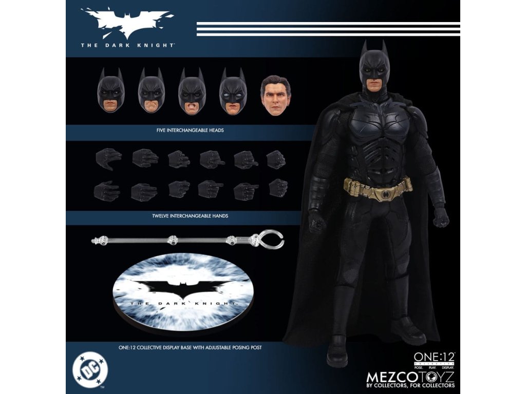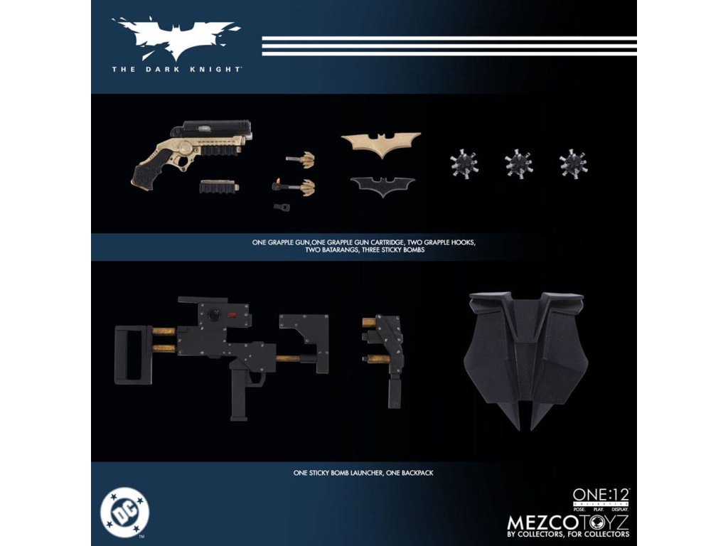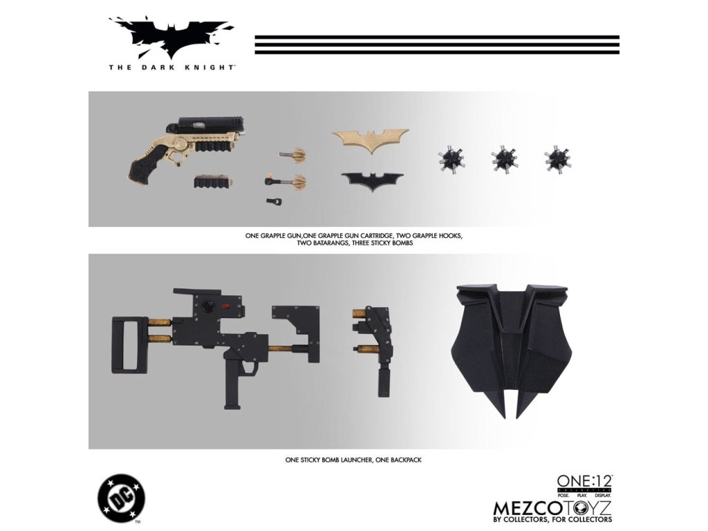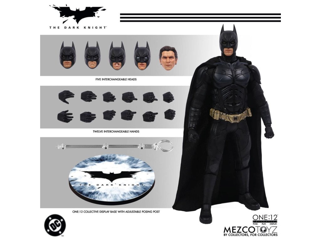 Temný rytíř se přidává k One:12 Collective! Batman je oblečen v filmově přesný, taktický brněný Batsuit s vyřezávanými pláty a pohyblivým pláštěm, který má detailní brnění od krku po boty. Poprvé v akční figurce One:12 Collective, Batman disponuje všechnými novými výměnnými výrazy obličeje a očními dílky, které umožňují mnoho různých výrazů obličeje. Je zahrnut i portrét Bruce Wayne bez masky, který připomíná Christiana Balea. Batman je vybaven arzenálem gadgetů od Wayne Enterprises a je vybavený odpalovačem lepkavých bomb, několika batarangy, hákovým pistolí s háky, pásy s kapsami, Jokerovou kartou a dalšími věcmi. V Temném rytíři se neúprosný Batman střetává s anarchickým Jokerem, který vynáší chaos na Gotham City, aby dokázal, že i nejušlechtilejší hrdinové a občané mohou být zkorumpováni. ONE:12 COLLECTIVE BATMAN AKČNÍ FIGURKA DISPONUJE: - One:12 Collective tělo s více než 30 body artikulace - 2 hlavy portréty (s maskou & bez masky) - 3 výměnné dolní obličeje pro maskovanou hlavu - 3 výměnné oky pro maskovanou hlavu - Ručně malované autentické detaily - Výška přibližně 17 cm - 10 výměnných rukou: - 1 pár pěsti (L & R) - 1 pár otevřených rukou (L & R) - 1 pár rukou pro chytání batarangu (L & R) - 1 pár rukou pro hákový pistol (L & R) - 1 pár rukou pro držení Jokerovy karty (L & R) OBLEK - 1 brnění na krk - taktický brněný Batsuit s výlavky na hrudník, ramena, stehna a holeně - utility pásek se dvěma (2) odnímatelnými pouzdry - brnění na rukavici - plášť s integrovaným drátem pro pózování - brněné boty AKCESORIÁ: - 1 odpalovač lepkavých bomb (připevněný na zadní pás) - 2 batarangy (různých velikostí) - 1 Jokerova karta (může být držena) - 1 hákový pistol - 3 háky pro hákový pistol (jeden s provazem) - 1 nábojnica pro hákový pistol - 1 batoh - 2 odnímatelné pouzdra utility - 1 One:12 Collective podstavec s logem - 1 průhledný nastavitelný One:12 Collective display post - Každá akční figurka Temného rytiře od One:12 Collective je balena v sběratelsky přátelské krabici, navržené s ohledem na sběratele.