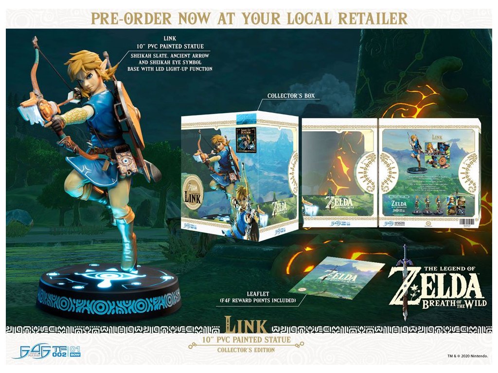 Byla jednou katastrofa, která se stala známou jako 'Pohroma'. A království Hyrule se zhroutilo. Toto je příběh o 100 letech po 'Pohromě'. Link, jako hlavní postava, se probudí z dlouhého spánku v podzemní trosce. Pak slyší tajemný hlas. A následuje do divoké země. First 4 Figures s hrdostí představuje tuto vysoce očekávanou PVC sošku Linka z videohry 'The Legend of Zelda: Breath of the Wild'. Soška má výšku cca 25 cm a je dodávána s odpovídajícím podstavcem v deluxe plnobarevném balení. Je třeba baterie (1x 18500, není součástí) - k dispozici samostatně (DPO18500) - S Micro-USB zásuvkou (kabel není součástí)