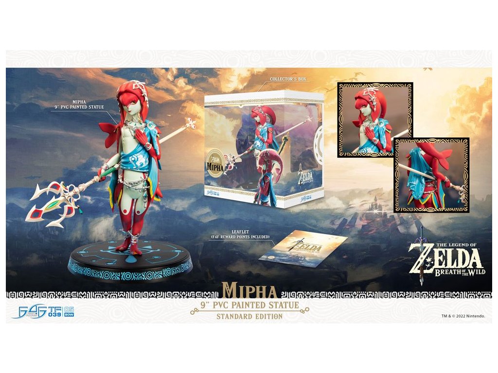 Společnost First 4 Figures se hrdě představuje svou nejnovější PVC sběratelskou položkou, soškou Mipha z The Legend of Zelda: Breath of the Wild. Vysoce detailní soška Mipha je inspirována jejím oficiálním artworkem z hry The Legend of Zelda: Breath of the Wild. Mipha stojí v jemné póze s rukou něžně přitisknutou na hrudi; v druhé ruce drží Lightscale Trident. Design na podstavci je založen na symbolu oka kmenu Sheikah, který se objevuje při aktivaci rozhraní Sheikah Slate. The Legend of Zelda: Breath of the Wild - Mipha (Standardní edice) obsahuje následující:- The Legend of Zelda: Breath of the Wild - malovaná PVC soška Mipha- Vysoce detailní podstavec inspirovaný uměleckým stylem hry The Legend of Zelda: Breath of the Wild- Leták F4F s 500 bonusovými body F4FVelikost: 21 x 16,5 x 21 cm.