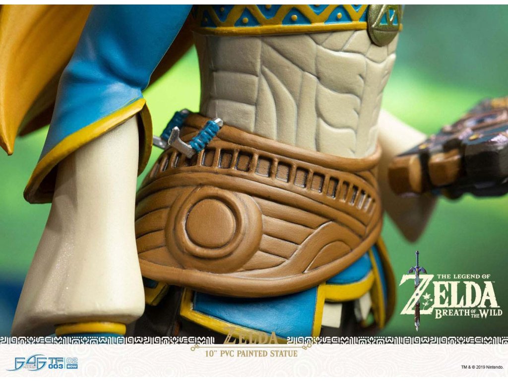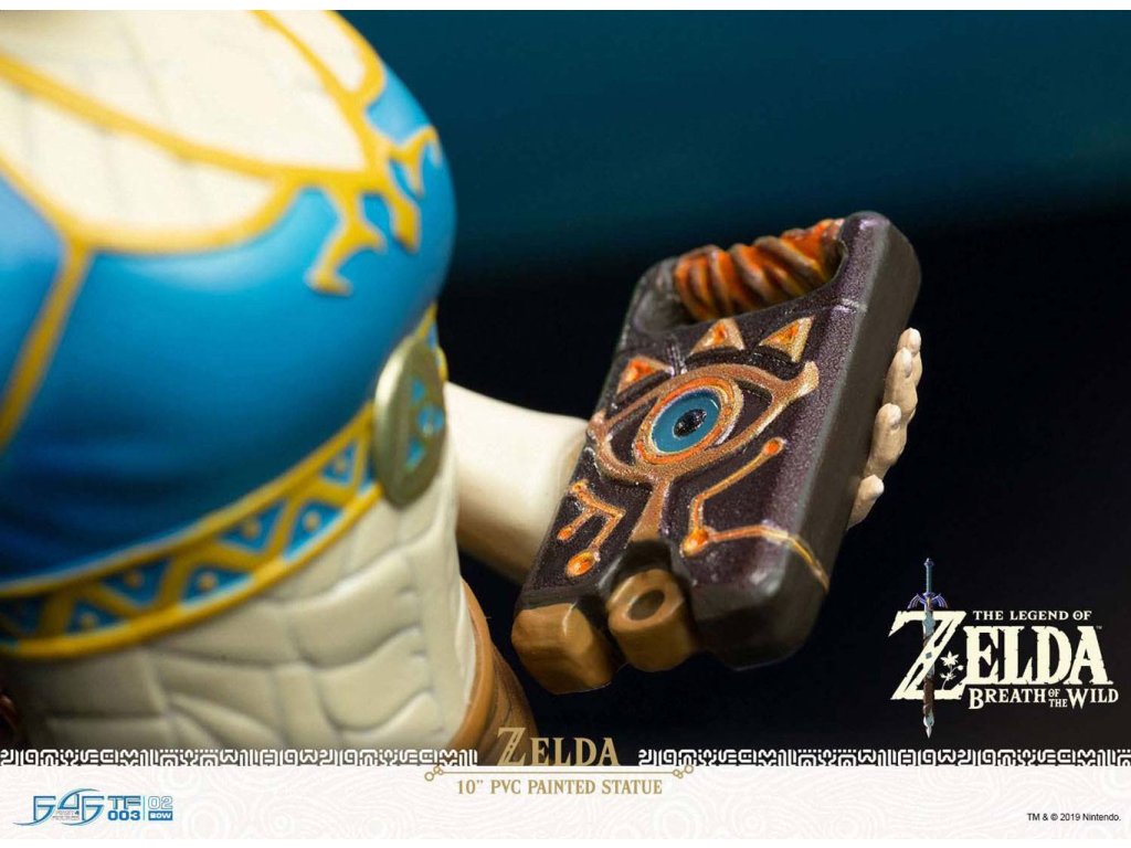 First 4 Figures se hrdě představuje jejich nejnovější PVC sběratelský předmět, The Legend of Zelda: Breath of the Wild - Zelda 10? PVC socha. Vysoce detailní PVC socha Zeldy je vidět v statické, ale příkazné pozici se Sheikah Slate v ruce. Design na základně je založen na symbolu, který se aktivuje při aktivaci rozhraní Sheikah Slate. Stojí přibližně 25 cm vysoká a přichází s odpovídající základnou v luxusním barevném balení.