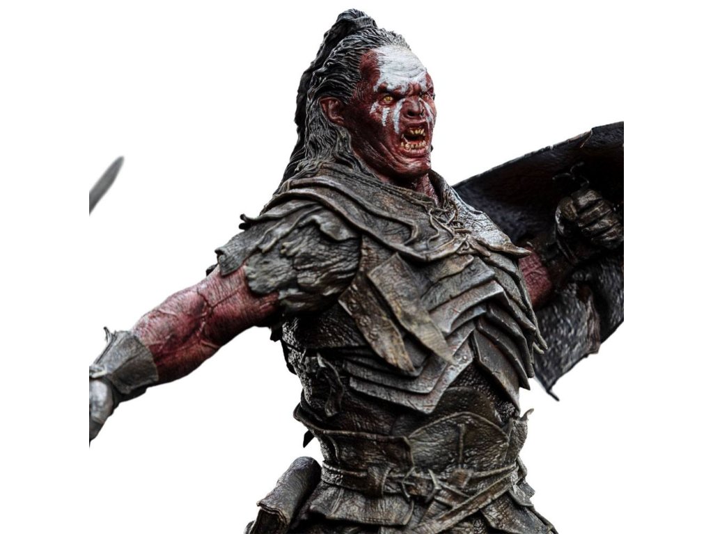 Od certifikovaných závisláků na vychytané kousky z Weta Workshop přichází série Figury z fandova: kolekce sběratelských figurek ikonických postav z filmů, televize a her! Nově v řadě: Pán Prstenů. Vytvořený urychlenou rychlostí pod věží Orthanc padlým čarodějem Sarumanem, Lurtz je prvním z nového plemene skřetů poslaných k útoku na Společenstvo do Amon Hen. Vysoký, široký a hrozivý, tito bojovní Uruk-hai mohou běhat dlouhé vzdálenosti bez odpočinku, i pod svítícím sluncem. Lurtz vede průzkumnou skupinu mnoha desítek těchto surových bytostí, lynx-oké a bdělé pro jakékoliv znamení jejich koristi, když hledají hobity v lesích Parth Galen. Mějte svůj fandovský prapor vysoko se Sochami z fandova: ikonickými postavami z nejžhavější pop kultury. Vyrobeno z vysoce kvalitního PVC v přibližném měřítku 1:8, každá postava je věrně zachycena pomocí 3D modelování a je doplněna stylizovanou scénickou základnou. Vlastnosti produktu: - od fanoušků pro fanoušky; - sochařil Yorke Yu; - vyrobeno z vysoce kvalitního PVC; - Lurtz je párován se svým mečem a štítem Uruk-hai; - design základny zobrazuje les Amon Hen; Lurtze jsme navrhli jako doplňkovou postavu k Aragornovi. Dva nesrovnatelné válečníky na věčném bojišti dobra a zla. Zde silný Lurtz připravuje svůj štít a zaskočí svého nepřítele; svaly napjaté, když se chystá udeřit s násilím a přesností.