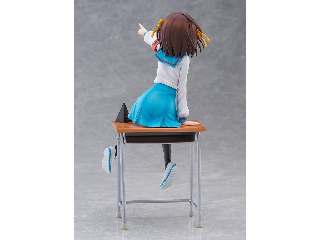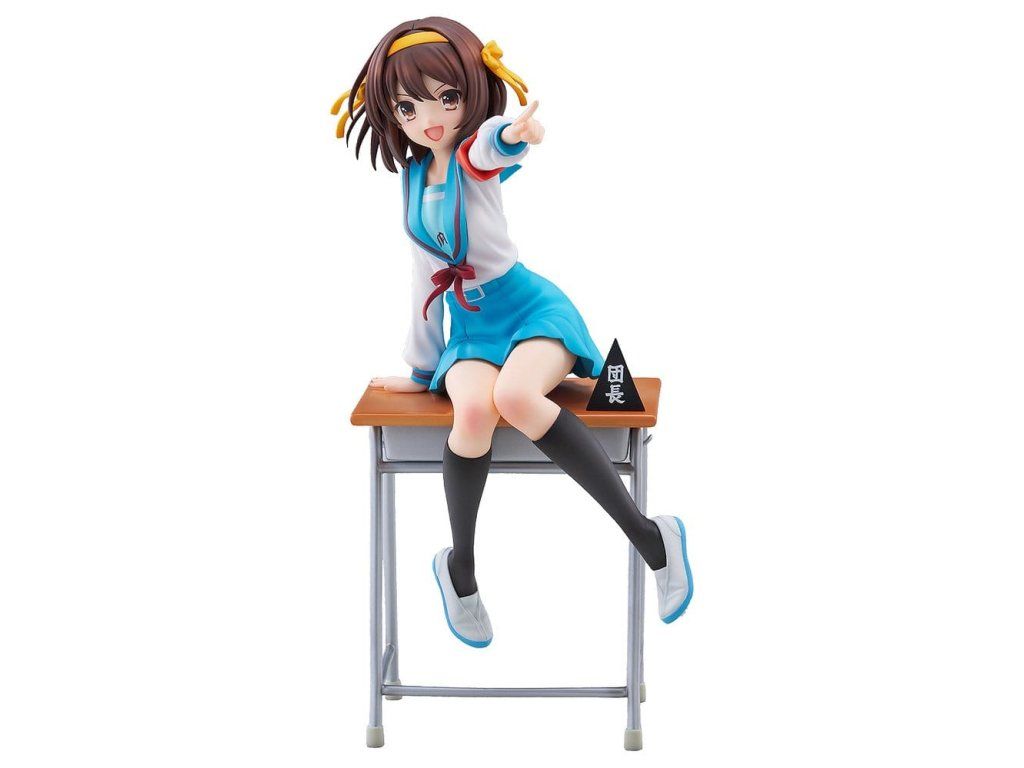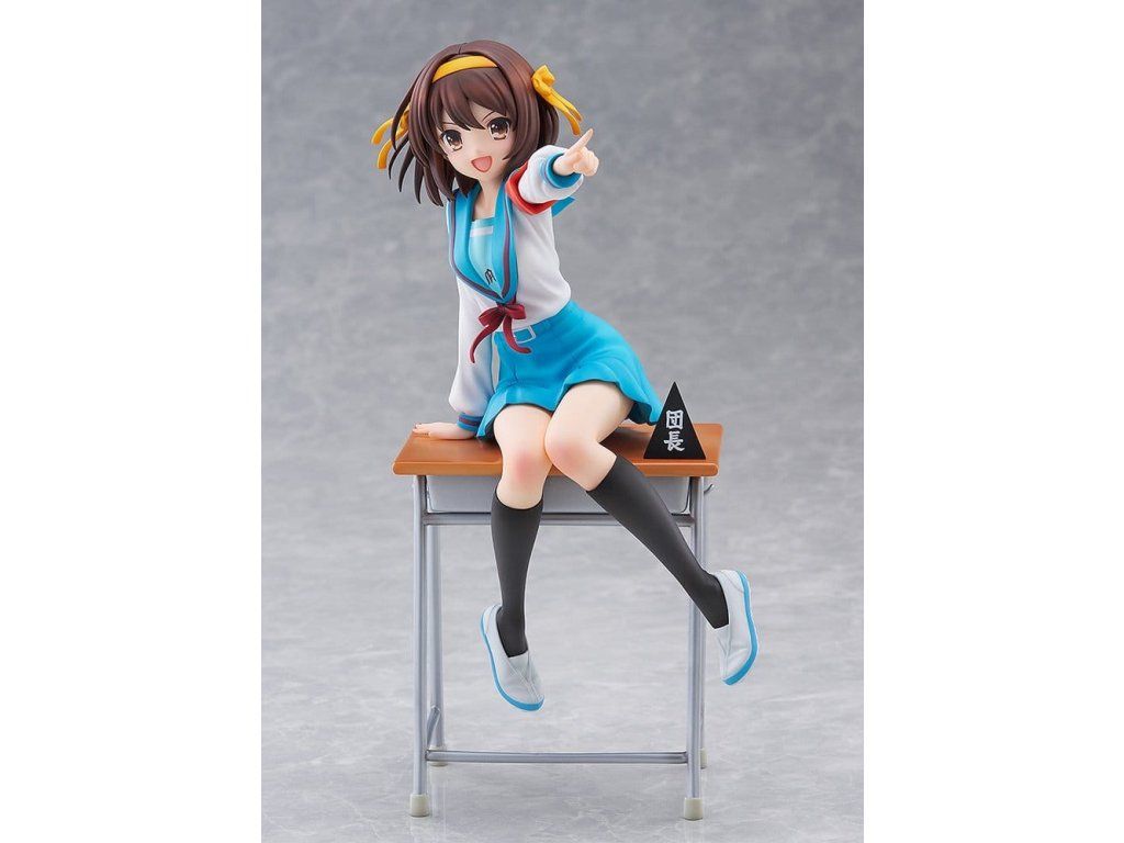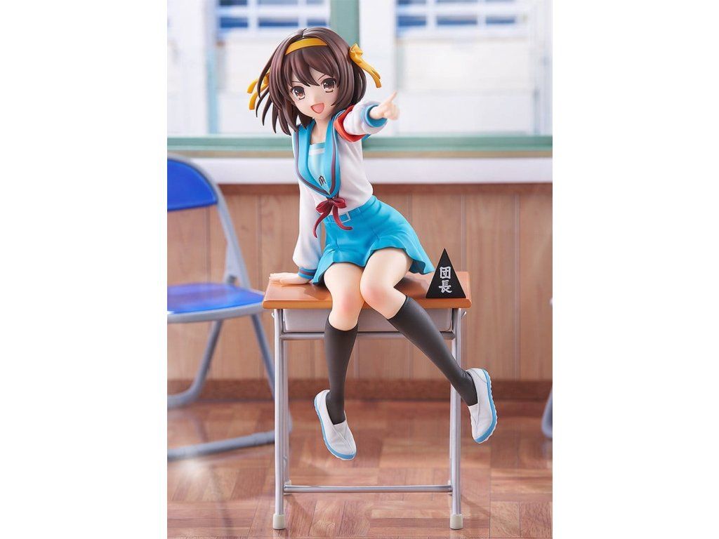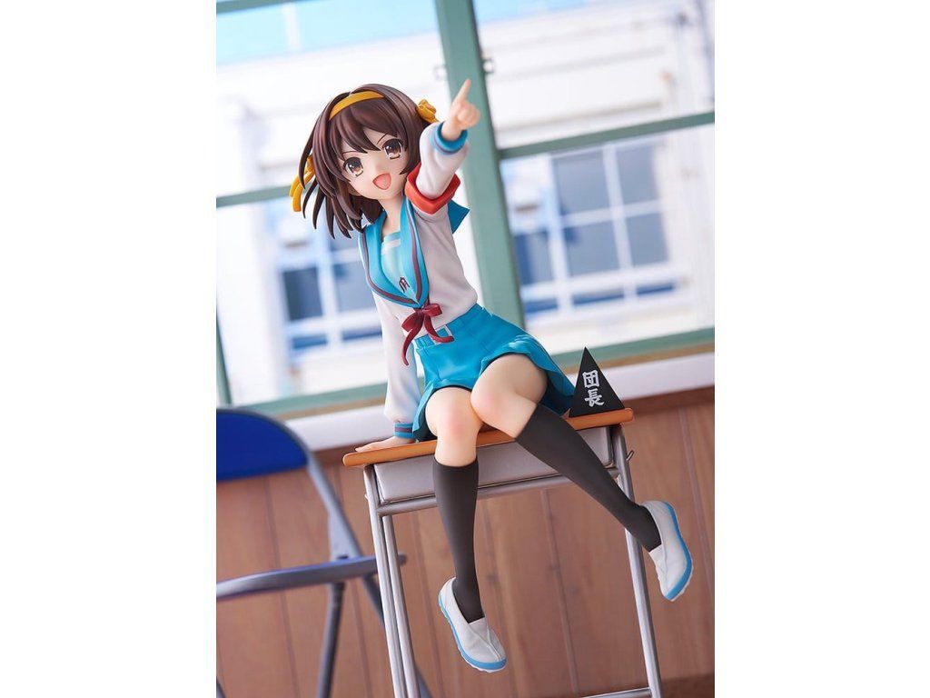 Na oslavu 20. výročí televizního anime 'The Melancholy of Haruhi Suzumiya' byla Haruhi Suzumiya přeměněna v figurku oblečenou do svého ikonického školního uniformy. Je vytesána v dynamické póze, naklánějící se vpřed, jako by se chystala promluvit, plně ztělesňující její energickou povahu. Figurka je plná propracovaných detailů, například výrazné pásky na paži, efektní kompozice, kdy sedí na lavici s rozpaženýma rukama, sukně, která byla pečlivě propracována tak, aby napodobovala přirozené záhyby, a dokonce i výrazně stažený pas. Její vlasy se vlní s pohybem a charakteristická stužka ještě více umocňuje dojem dynamiky. Součástí lavice je i cedule 'Brigade Leader' jako symbol jejího postavení vůdkyně. Tato figurka zachycuje půvab sebevědomé a charismatické vůdkyně SOS Brigade, Haruhi Suzumiya, a jistě se stane nezapomenutelným přírůstkem do vaší sbírky.