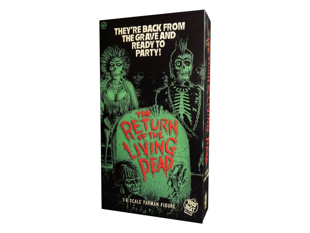 Trick or Treat Studios s hrdostí představuje oficiální licenci, Návrat živých mrtvol - Tarman - Akční figurka v měřítku 1:6. Tato úžasná figurka byla vytvořena od základu, aby měla co nejvěrnější vzhled k filmu. Používá různé materiály a povrchové úpravy, aby dokázala co nejvíce vystihnout ten dokonalý, lepkavý, čerstvě z barelu vypadající zombík. Figurka obsahuje 2 vyměnitelné hlavy a mozek; hlava s názvem "MOZKY" je inspirována prvním setkáním s Tarmenem, kdy volá po Tininých "MOZCÍCH!". V této scéně byl Tarman zobrazen pomocí loutky s mírně odlišným vzhledem než kostýmová verze postavy. Hlava "VÍCE MOZKŮ" je inspirována scénou, kdy skupina nevědomky potká Tarmana (zobrazeného kostýmovaným hercem) v suterénu, když jdou pomoci Tině. Tarman vykřikne "VÍCE MOZKŮ!" poté, co si dá svačinu ze Sebevraha. Dodává se v nádherné sběratelské krabici s okénkem, které lze odklopit. Sledujte příslušenství, které brzy přijde, včetně rozděleného psa, barelu Trioxin a pozadí suterénu.