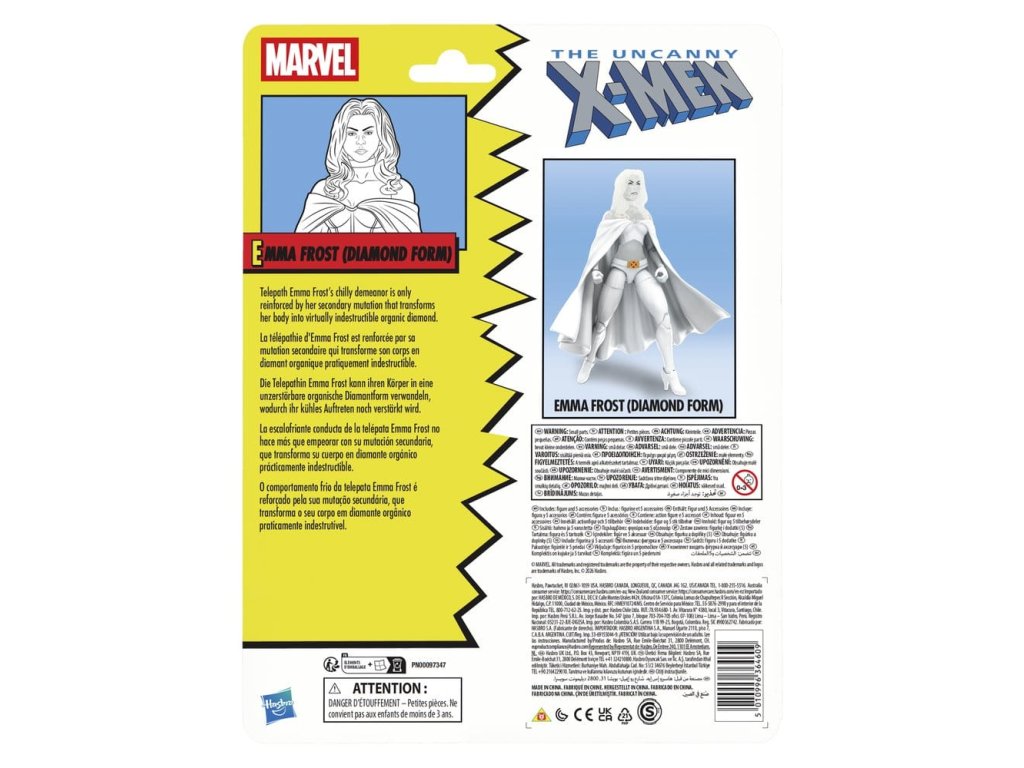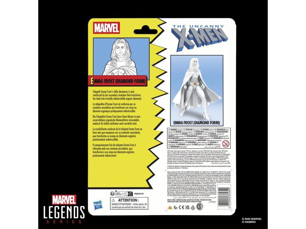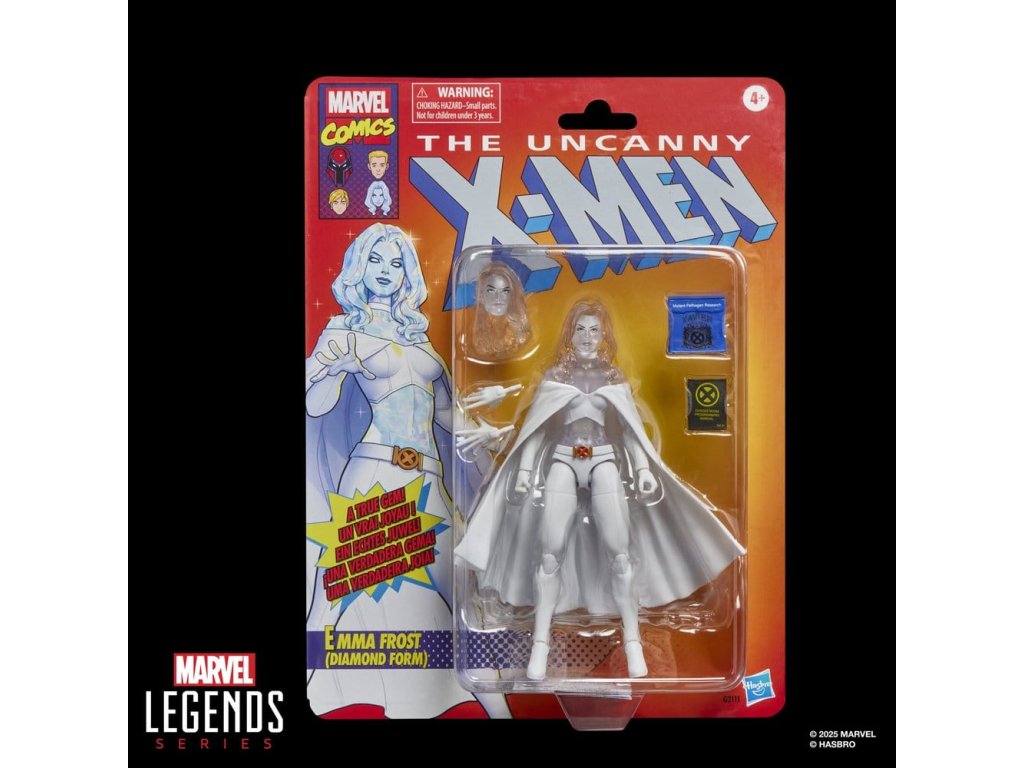 Přineste vzrušení a zázraky Marvelova vesmíru do své sbírky s figurkou Hasbro Marvel Legends Emma Frost (Diamantová Forma)! Detailně zpracováno tak, aby vypadala jako postava z komiksů Marvel's Astonishing X-Men, je tato 6 palcová sběratelská figurka Marvel plně artikulovaná s premium designem a otočnou hlavou, pažemi a nohama. Tato sada akčních figurek Marvel obsahuje 5 doplňků, včetně 2 náhradních dlaní, náhradní hlavy, manuálu Zóny Smrti a složky výzkumu mutantních patogenů. 6 palcová škála akčních figurek Hasbro Marvel je ideální pro pózování a zobrazování ve sbírkách fanoušků. Představte si scény inspirované komiksy na své poličce s akčními figurkami Marvel Legends a sběratelskými předměty Marvel.