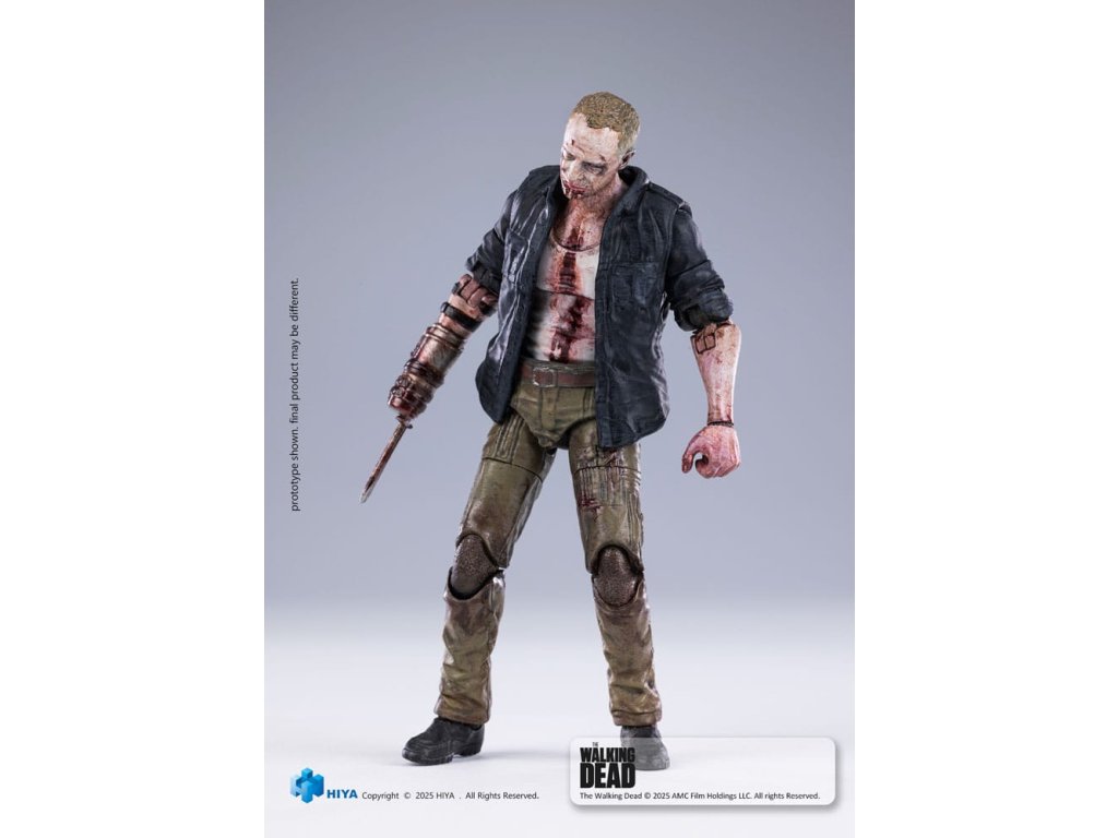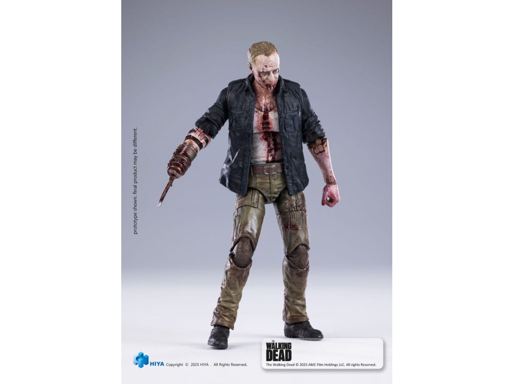 EXQUISITE MINI seriál Merle Walker verze 1/18 měřítkové akční figurky z The Walking Dead se nyní připojuje k hračkám Hiya. Po vypuknutí viru Wildfire, který vedl k zániku civilizace, přeživší bojují o své životy. Merle Dixon, starší bratr Daryla, vyniká jako jeden z nezapomenutelných postav v The Walking Dead. Poté, co Merle prošel léta války, zrady a izolace, se nakonec pokusil zavraždit Guvernéra, ale neuspěl, setkal se se svým koncem a vrátil se jako chodec. Tato zcela nová figurka akční figurky EXQUISITE MINI seriálu Merle Walker dosahuje výšky přibližně 10,5 cm a věrně znovu vytváří jeho vzhled z The Walking Dead. Figuretka má mimořádně detailně propracované tělo pokryté jizvami a vyschlou krví, s bledě šedou, rozpadající se kůží, která dokonale zachycuje jeho chodící vzhled. Vlastnosti košile odhalují ránu a krev prosáklou látku, zatímco jeho ikonická protéza pravé ruky je znovu vytvořena s rezavými texturami a krvavými skvrnami. S více body artikulace nabízí dynamické pozování a je dodáván s 1x vyměnitelnou částí ruky s oříznutými prsty. Navíc zahrnuje náhodně vybraný exkluzivní stánek ze čtyř různých vzhledů, který replikuje scény rozptýlených tělesných zbytků a bahenního terénu, čímž poskytuje poutavý zážitek z nejnapínavější krveprolití!