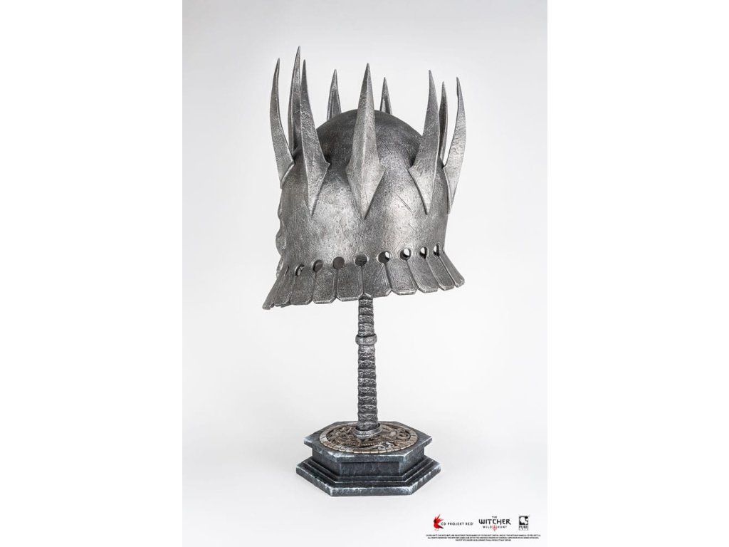 Snažili jsme se tuto hrozivou helmu zreplikovat do nejmenších detailů. Helma Eredina má odnímatelný přední panel ve tvaru lebky a vysoce detailní replika je umístěna na podstavci tvarovaném jako rukojeť jeho vlastního meče. Replika helmy Eredina ze Zaklínač 3: Divoký hon v měřítku 1:1 je perfektním vystavovacím kouskem pro fanoušky Zaklínače!