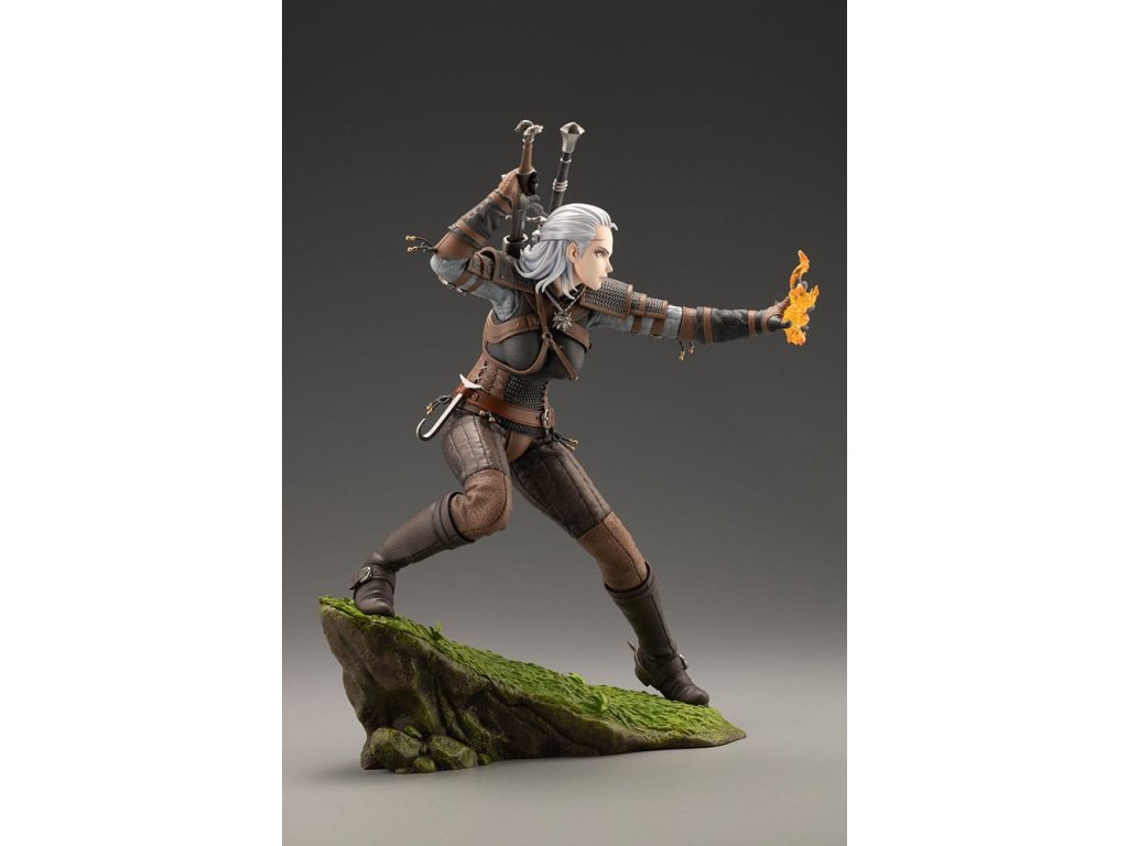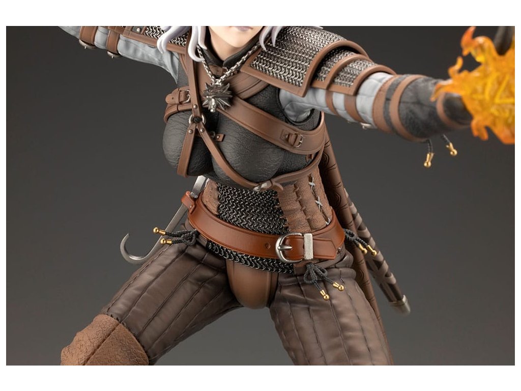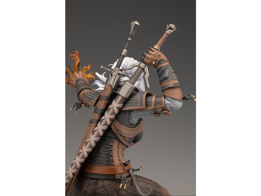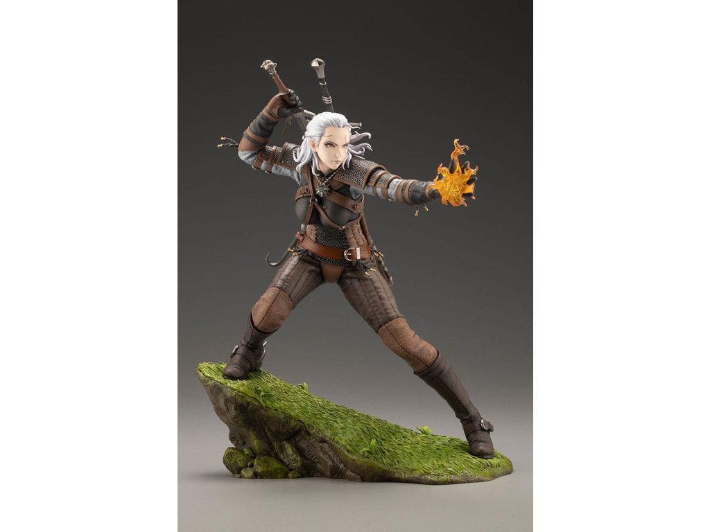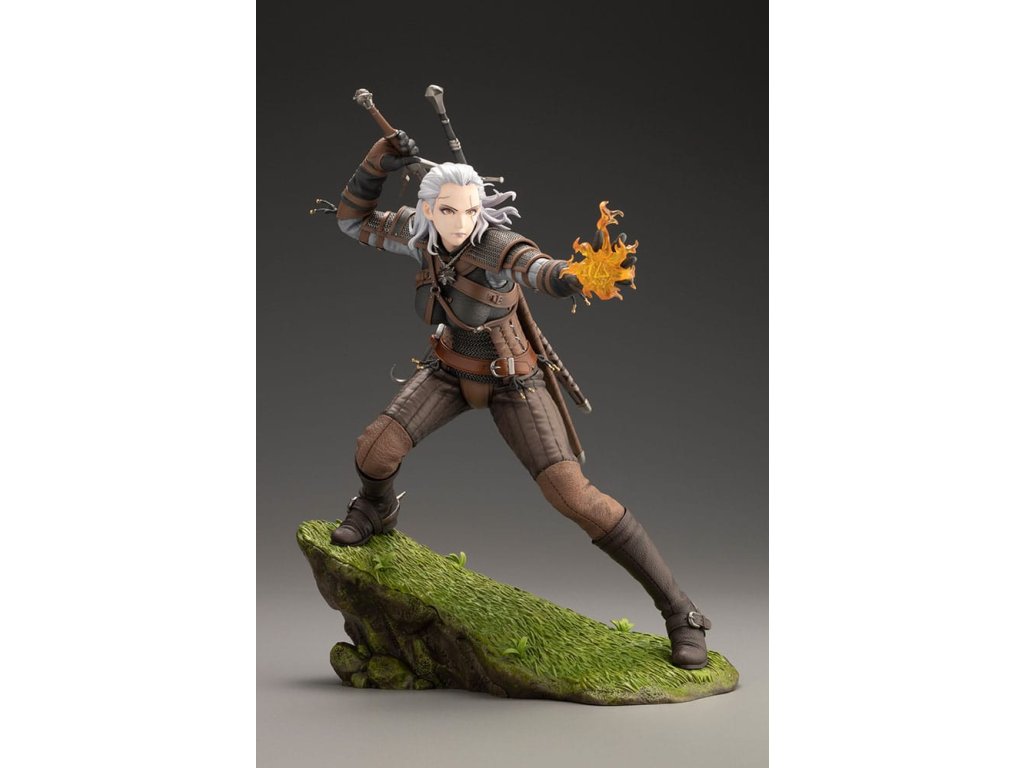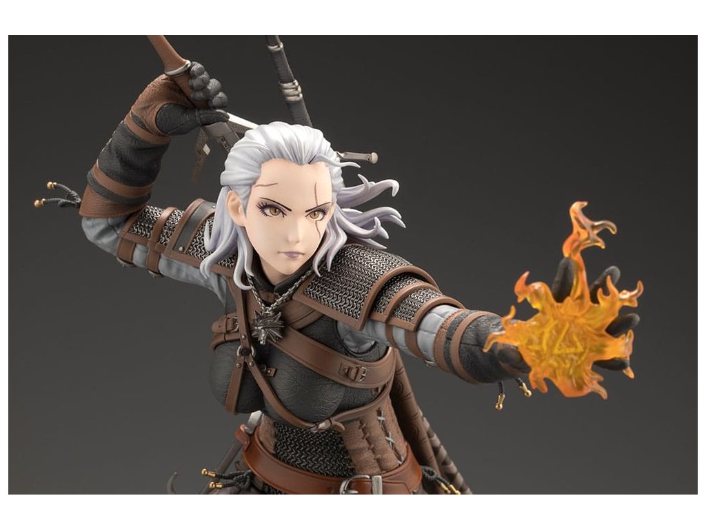 Temné fantasy univerzum příběhu RPG série od studia CD PROJEKT RED, The Witcher, se připojuje k BISHOUJO kolekci! A první sochou v této sérii je... Geralt z Rivie!? Navržený Shunyem Yamashitou, tento legendární zaklínač dostal neočekávanou proměnu do podoby krásné ženy. Teď ožívá, připravená vyndat svůj stříbrný meč a vystřelit své nepřátele pořádným Igni. Socha byla pečlivě modelována návrhářem Yoshiki Fujimoto - věnujte pozornost detailům brnění, které bylo vytvořeno s ohledem na realistické textury. Povrch každého kusu kůže byl upraven tak, aby měl různou drsnost, a byl pečlivě vytesán až po každý šev. Mírně metalický lesk malby dodává zářící kroužkové zbroji realistickou přítomnost. Druhá BISHOUJO socha Zaklínače je právě ve vývoji! Sledujte neustále se rozšiřující řadu BISHOUJO!
