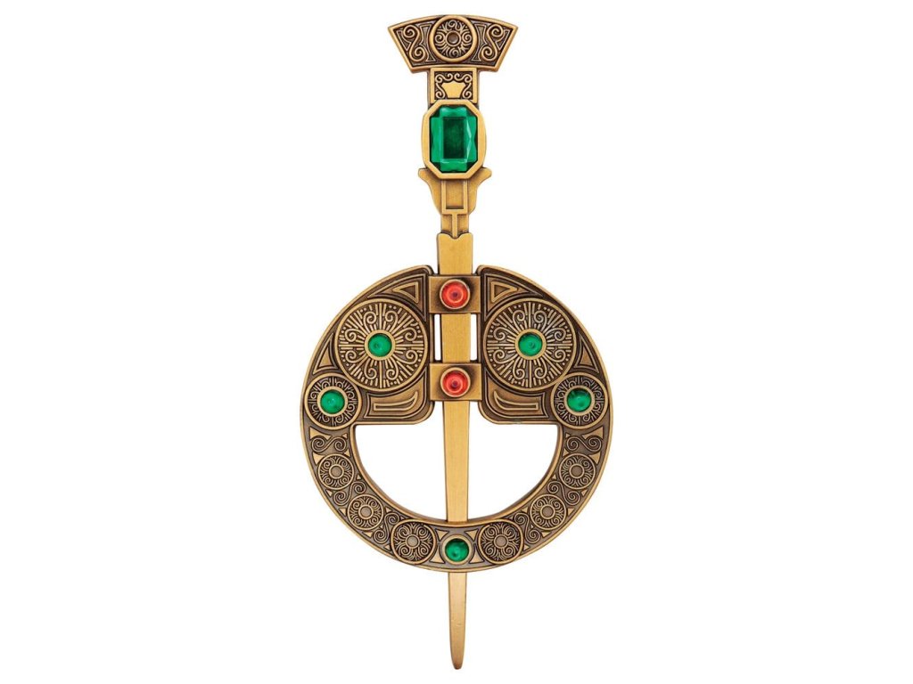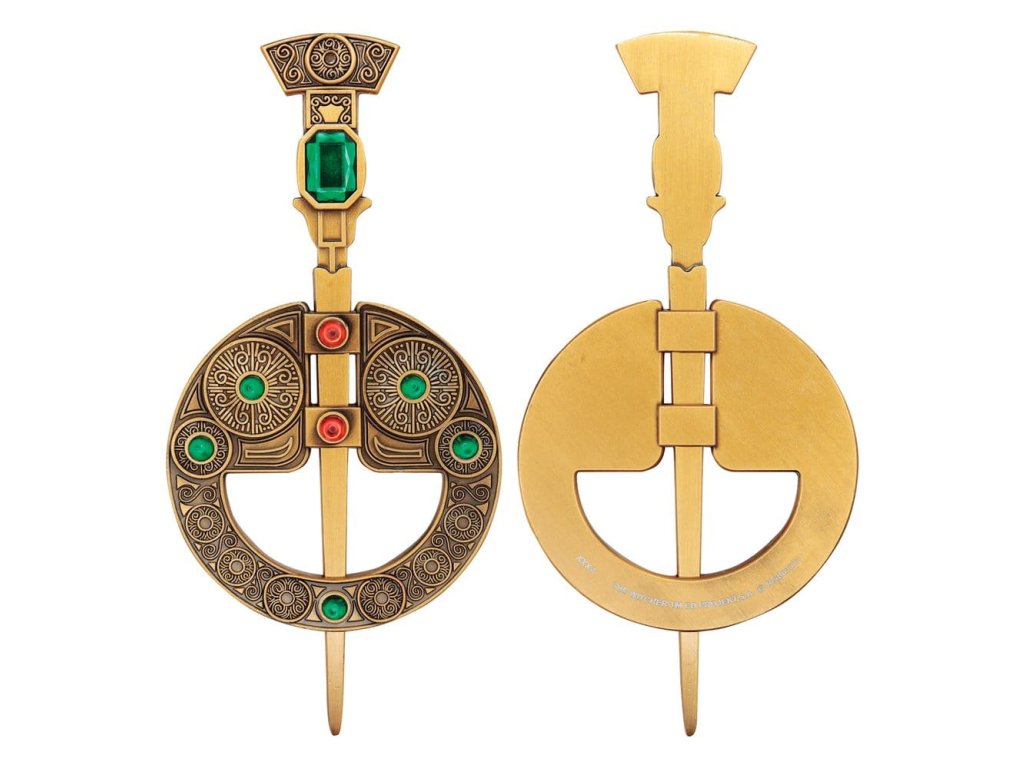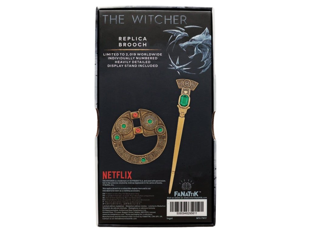 Renfri a Geralt se setkávají v Blavikenu během první epizody Zaklínače. Po noci strávené společně v táboře, jejich setkání končí tragicky a Geralt získává Renfriinu brož, kterou připevní na rukojeť svého meče jako připomínku jejich setkání. Tato omezená edice repliky brože se skládá ze dvou samostatných částí a je individuálně číslována na okraji jako jedna z 2 019 (rok vydání Zaklínače na Netflixu). Tato replika brože je sběratelský exponát a není určena k nošení jako doplněk k oděvu. - Oficiálně licencované - Omezeno na 2 019 - Individuálně číslované na okraji - Délka špendlíku 160 mm - Průměr brože 80 mm